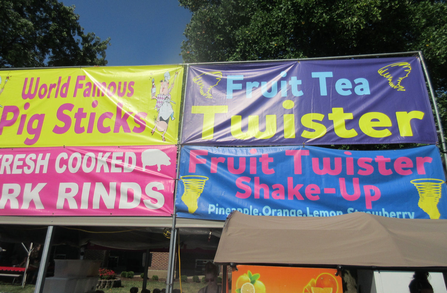 Anne, on the other hand, is all about fruit drinks at fairs and carnivals. A lemon shake-up is on her must-list every time. Later in the day, having met her lemon shake-up quota before noon, she branched out and tried another drink from the Taste of the Fair roster, a Strawberry Pineapple Icey. I understand it was fine for what it was. The fun part was watching the addition of the whipped cream on top by a 6-year-old helper girl behind the cart working with Mommy at her grown-up lemonade stand.