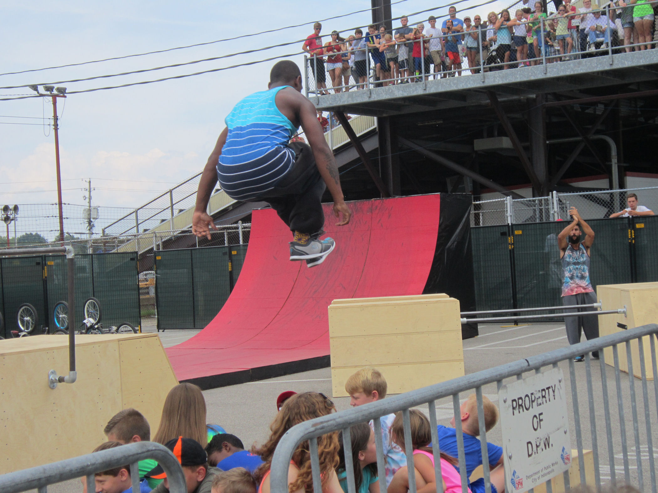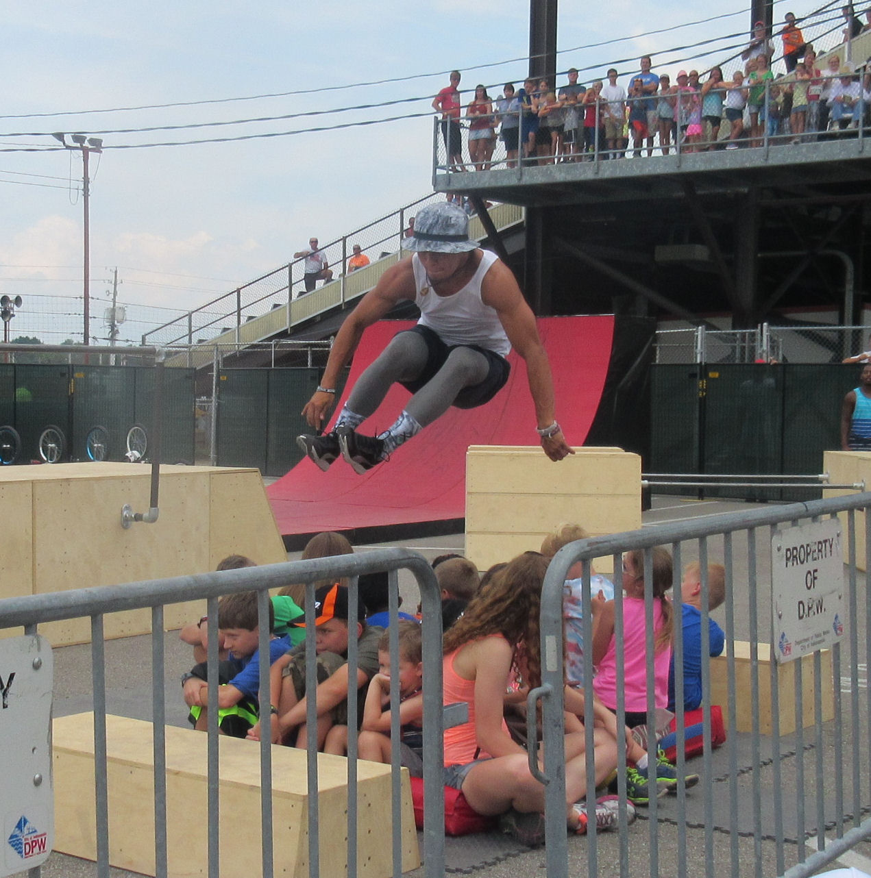 My one regret: when we see parkour in movies such as Casino Royale, Live Free or Die Hard, The Bourne Whichever, Brick Mansions, and so on, it’s always around skyscrapers and other tall constructs that allow for vertical as well as horizontal movement. Sadly, State Fair officials were too cheap to build a skyscraper on site just for the Parkour Show. Shameful missed opportunity.