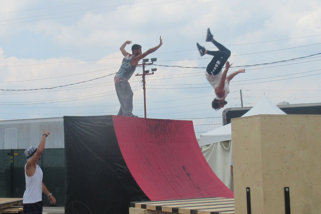 One event we attended this year was called simply The Parkour Show, a fun display of acrobatics. Four guys leaped, bounced, tumbled, did standing somersaults, and wowed a crowd that hopefully knows better not to try this at home.