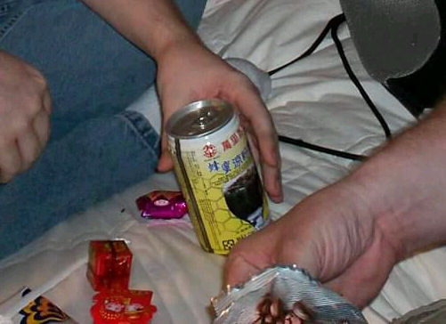We later learned those chunks were gelatin cubes that are packaged in every can of Honey-Flavored Grass Jelly Drink (slogan: “It’s like rolling tiny dice into your mouth!”), not a coagulated mess resulting from years of sitting on the shelf unsold. Chinese kids presumably hold those globules in the same regard that American kids used to hold Cracker Jacks prizes. I take back what I said before about their marketing department: whoever tricked anyone into craving that kind of emetic fodder is a staggering genius.