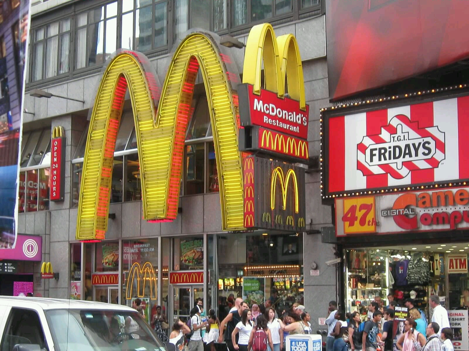Not every street corner has been purged for the kiddies. Adult fare still poked out in a few spots if you looked too closely. I noted one mild gentleman’s club with purple awning and super-sized rooftop ad for GNC, but its proximity to the heavy all-ages traffic and shiniest lights seemed an odd choice compared to the crasser holes-in-the-wall tucked away in the shadows near Port Authority.
