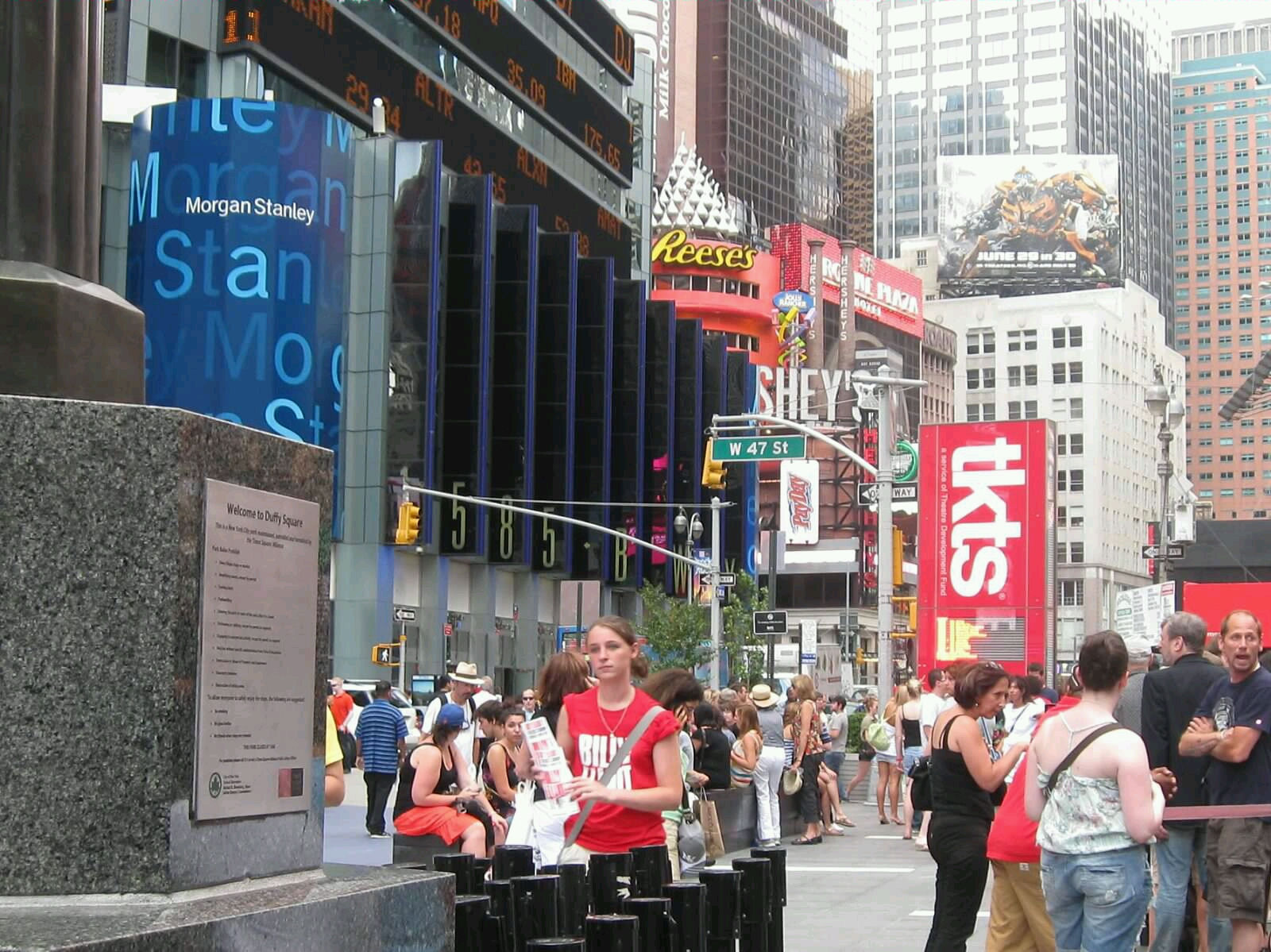 When we stopped to rest near the Times Square permanent bleachers, this man handed us a travel brochure several days too late and spent uncountable minutes extolling the virtues of the great and powerful Hunter S. Thompson, whom none of us have read. I faintly improved his opinion of us by remembering correctly that Benicio Del Toro costarred in that one Terry Gilliam flick about a psychotropic junkie road trip.