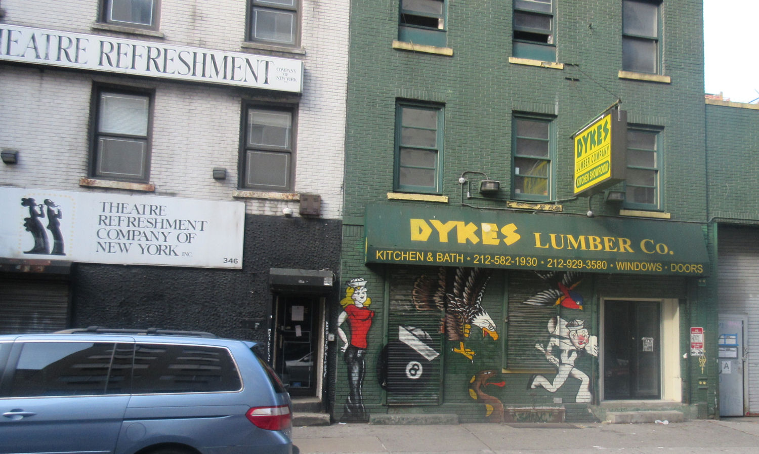 The reality: Hell’s Kitchen has slowly been undergoing gentrification for years. It’s not as immediately noticeable as the upgrades we see Carol Kane protesting on The Unbreakable Kimmy Schmidt, but it’s there. It could use several coats of paint and maybe a demolition or two, but we never felt unsafe in all our walks to either end of it. Many actors and other creative types purportedly live in the area between and around the various blue-collar businesses that have probably never had to deal with Kingpins of Crime or treasure-hunting ninja.