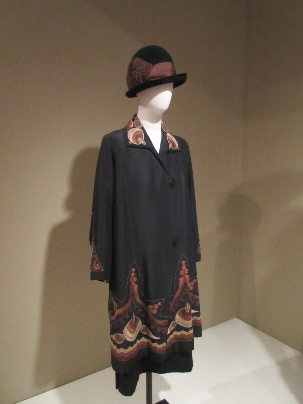 “Dressing Downton: Changing Fashion for Changing Times” was previously on display at Chicago’s Driehaus Museum, but we failed to fit it in our schedule during their time frame. Neither Anne nor I are dedicated followers of fashion, but those beguiling, beleaguered Granthams and their beloved castle combined history and must-see TV in a way that was just enough to entice us to come peruse the collection in Cincinnati, which is 60-90 minutes closer to us than Chicago. If you watched all six seasons of Downton Abbey you might recognize certain outfits from specific episodes or arcs. If not, wall plaques provide context both in history and in series.