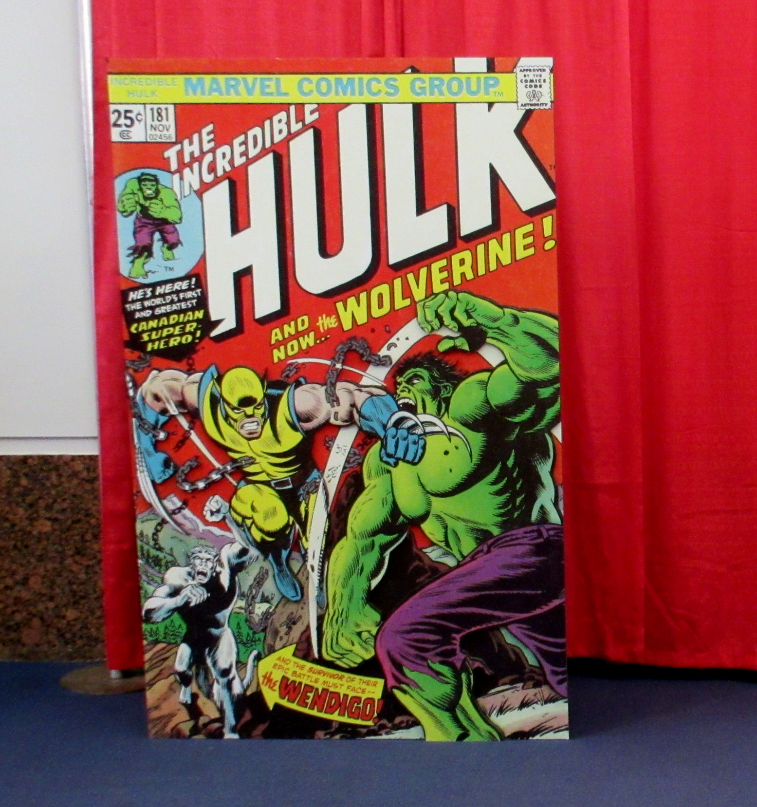 Super-sized reproduction of Herb Trimpe and John Romita’s cover to Incredible Hulk #181 near the entrance to Cincinnati Comic Expo 2016, reminding you to think comics, buy comics, and please don’t leave unless you’re carrying at least six pounds of old comics in your bag.
