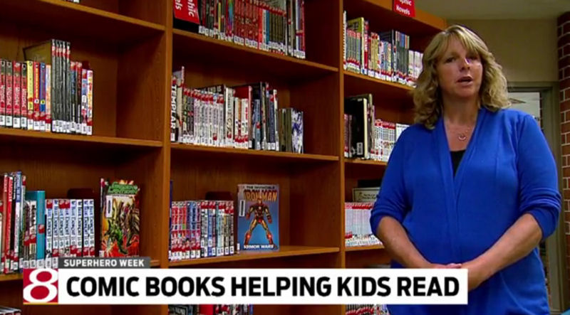 Then there was the time WISH-TV drew connections between comics and reading, and the difficulties some youngsters can have in finding the right literary niche that speaks to them and opens their mind to the power of the written word, with or without pictures. They visited a local high school and chatted at length with one student who struggled for years with books and schoolwork alike, but who’s made tremendous strides in recent years thanks in no small part to finding a medium and format that resonated like no other.