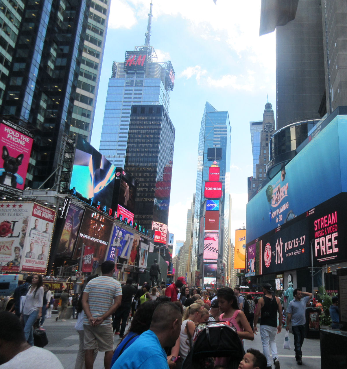 Times Square basic shot: the crowds, the screens, the towers, the multinational corporations on parade.