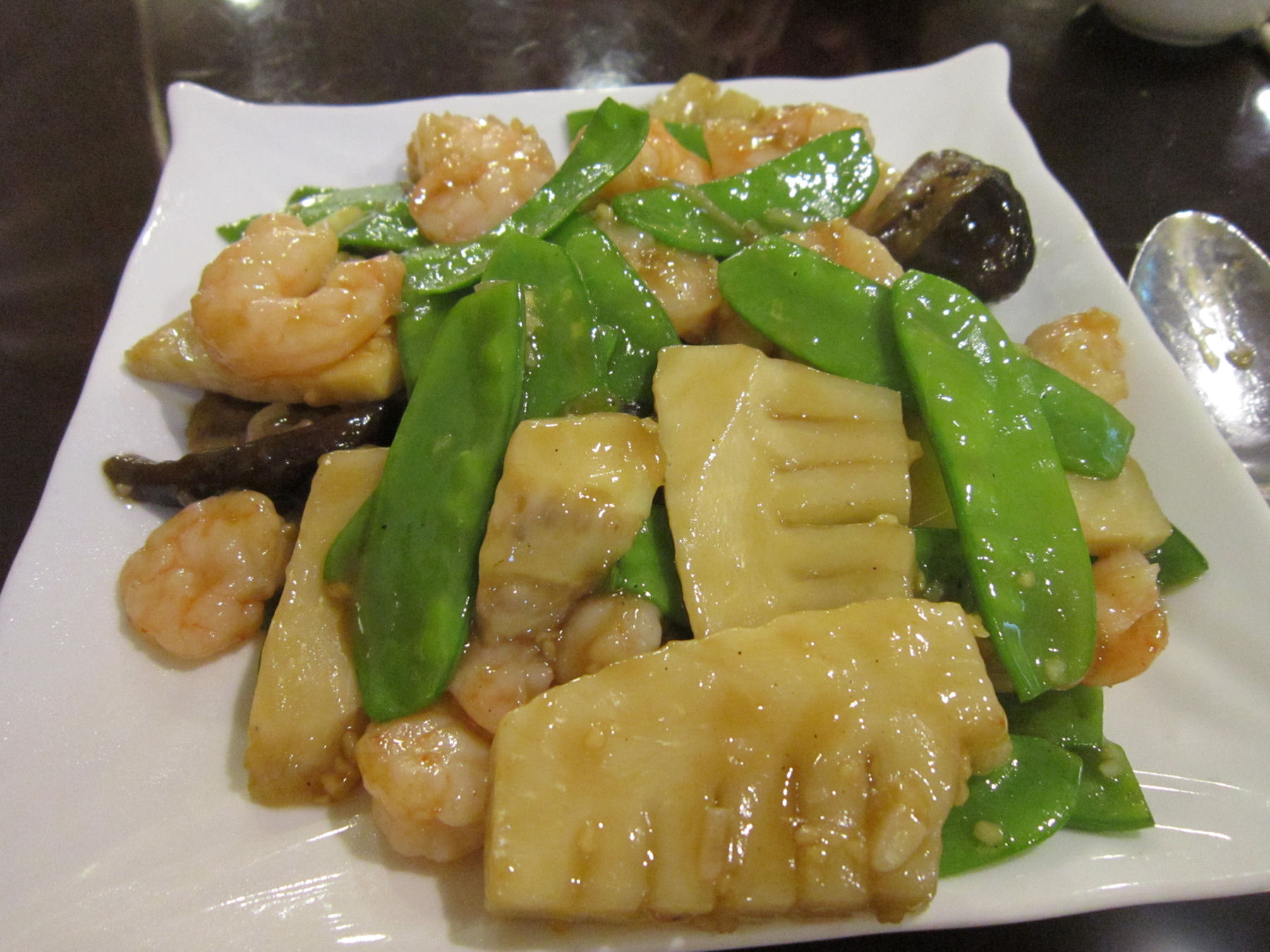My main dish of crispy shrimp-stuffed bean curd, alias Tofu. These refused to cool down long after they’d left the fryer.