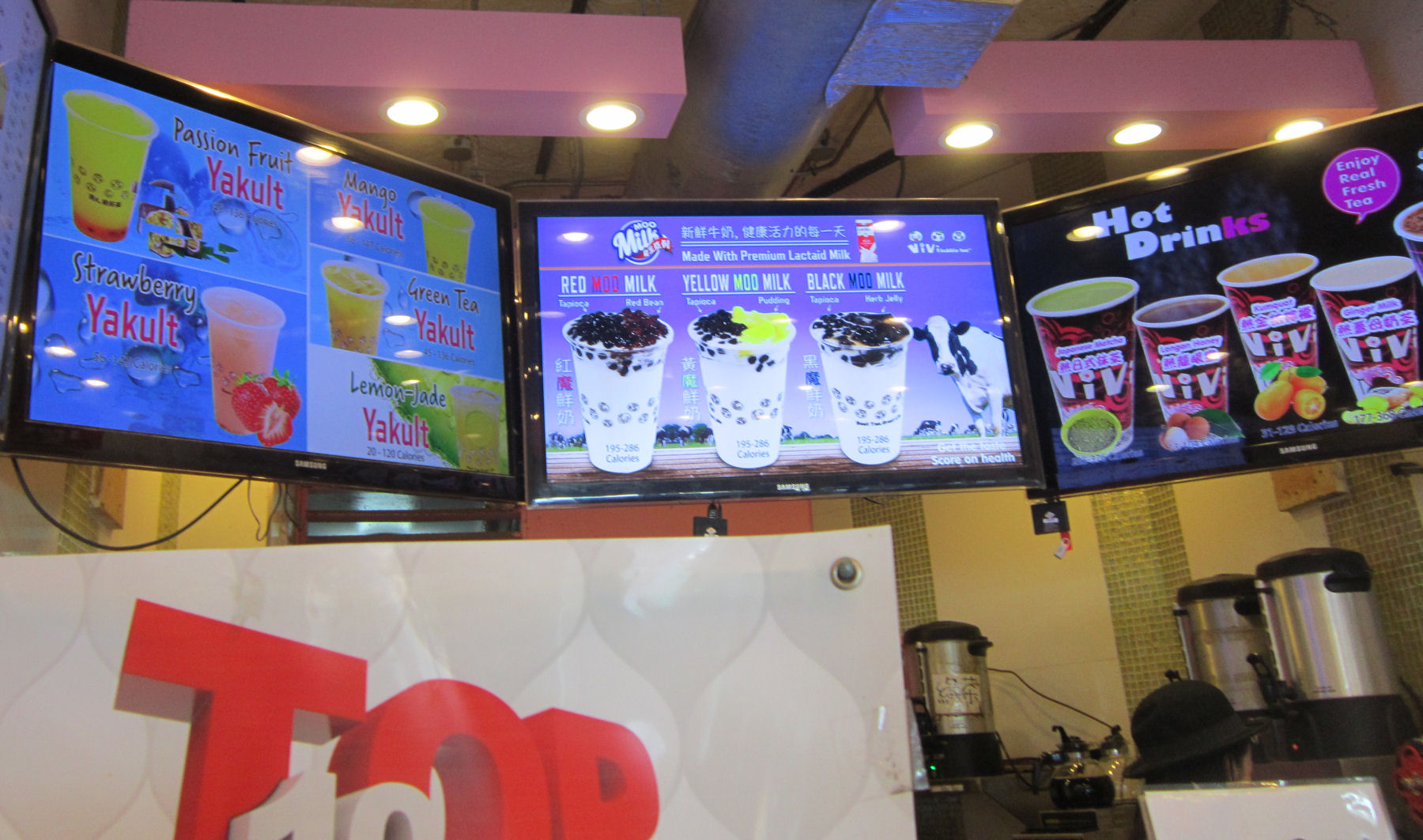 Animated menus and sharp uniforms are among the visual treats to be had while waiting for your solids-in-suspension treats.