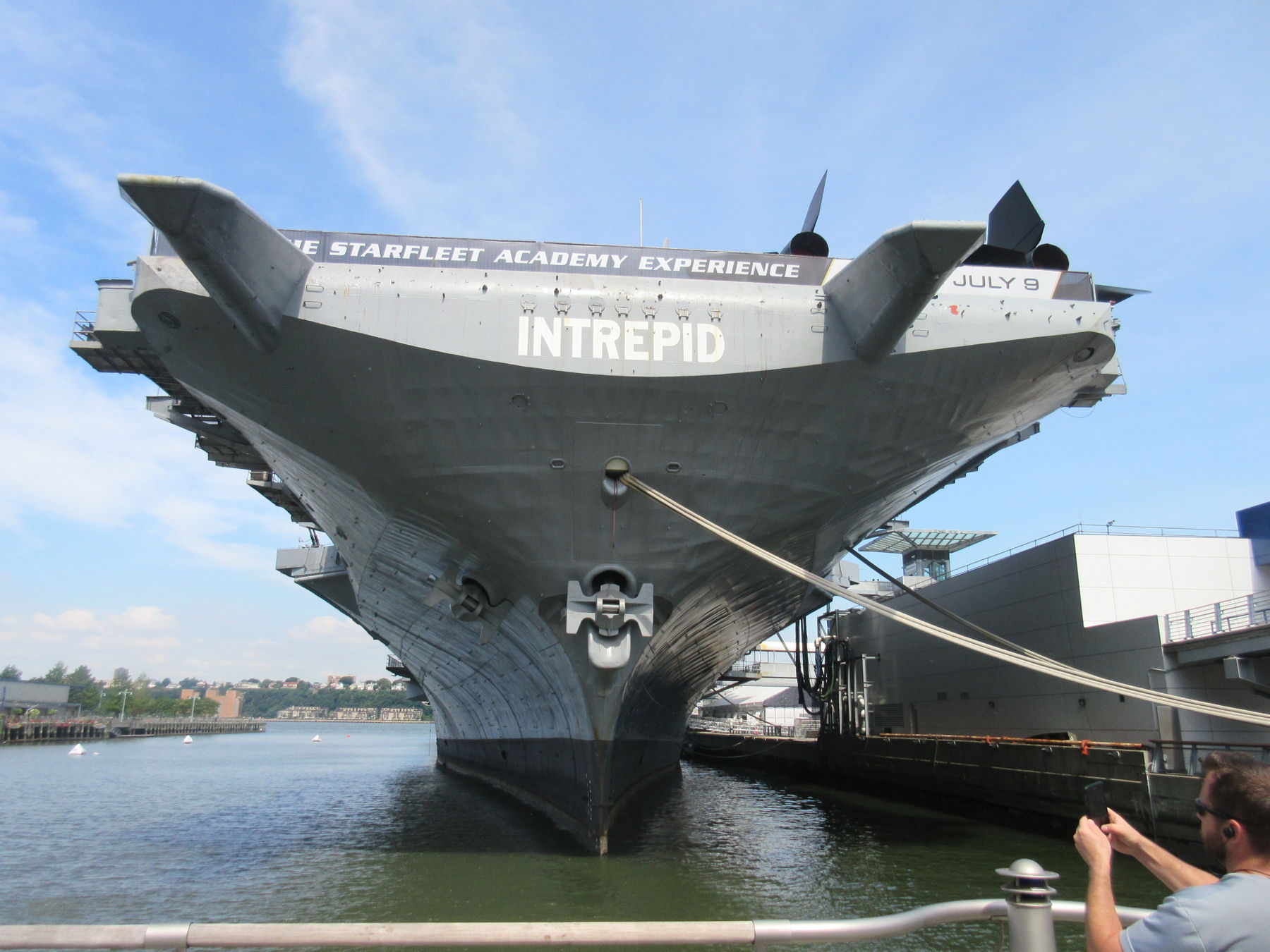 When most folks think of New York City, “battleship” isn’t usually among the first 500 words that come to mind. For us that changed when we learned the eastern shore of the Hudson River is the home of the USS Intrepid, docked on the western border of Hell’s Kitchen, several blocks from our hotel. It was convenient, it was showy, and it had a few special exhibits that dovetailed with our geek interests. So that’s why it was our first attraction on the morning of Day Four, and why this entry was nearly titled “Battleship III”.