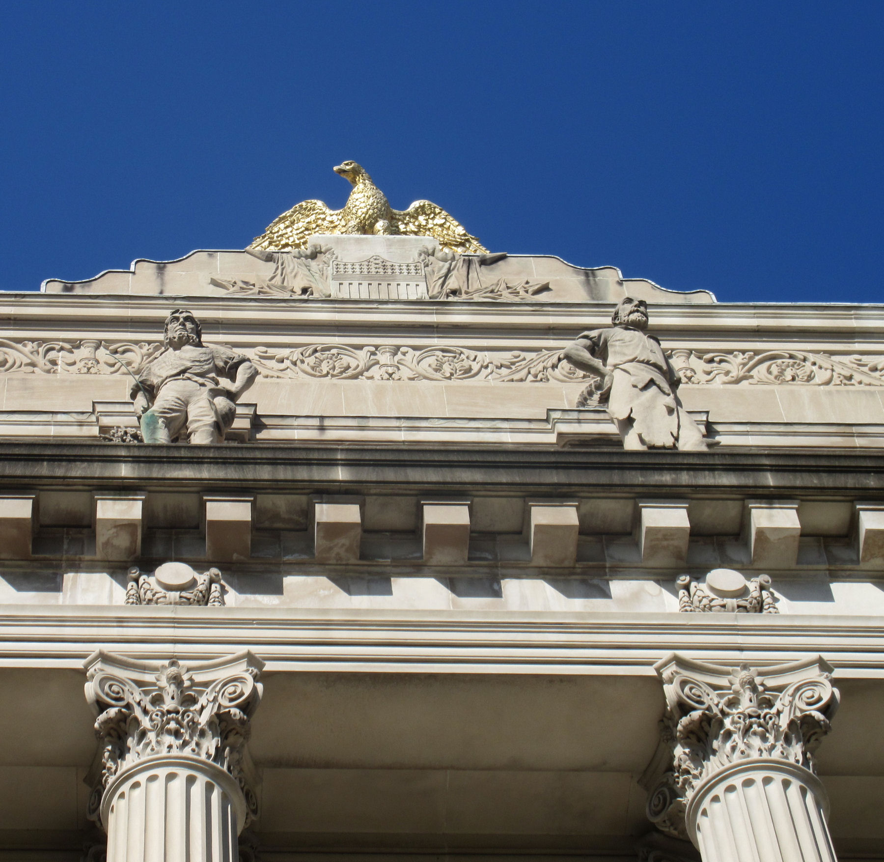 Above the south entrance is “The Westward Journey”, a series of sculpted figures with a gilded bald eagle watching over them.