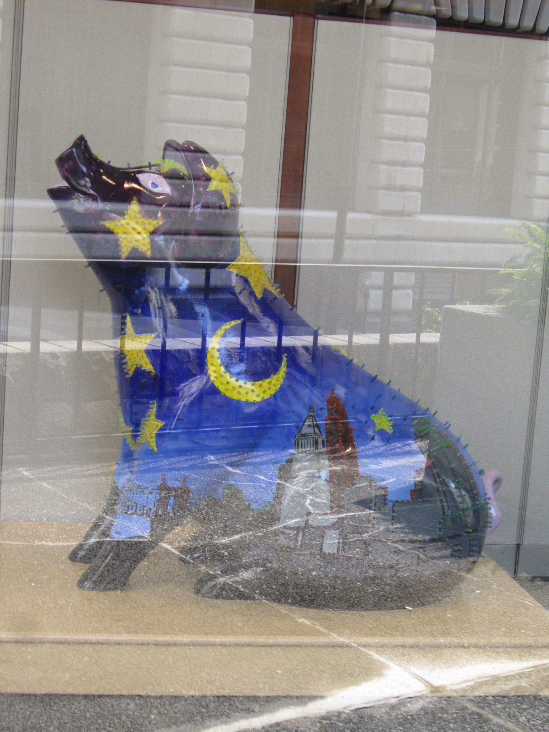 We understand downtown has a number of pig statues stationed here and there, but the only one we saw on or walk was this fly-by-night pig inside PNC Bank.