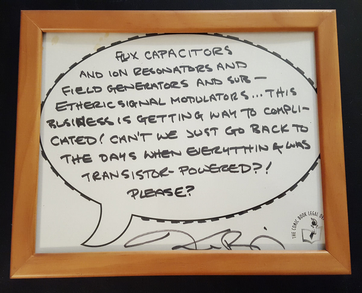 The word balloon that Kurt Busiek hand-lettered for me in exchange for my CBLDF donation. Note the extra care Busiek put into gilding the balloon edges to resemble Comicraft-style Iron Man dialogue. Gotta love that attention to detail.
