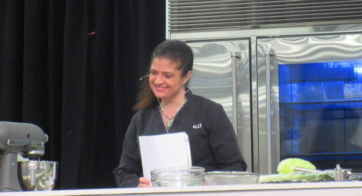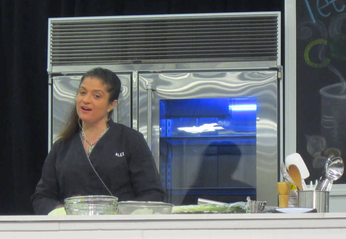 While she worked and grilled and mixed and assembled and so forth, Chef Alex took questions from the audience on a variety of topics. Things got off to a fun start when a fan asked her about recommendations on salad prep for germaphobes. She recommended buying pre-wrapped heads of iceberg lettuce, using garbage bags as gloves, forgetting the notion of actually washing each individual leaf, and never allowing anyone else to prepare her salads for her ever again. After an extended answer that was partly tongue-in-cheek but also partly serious, she offered a conciliatory hug.