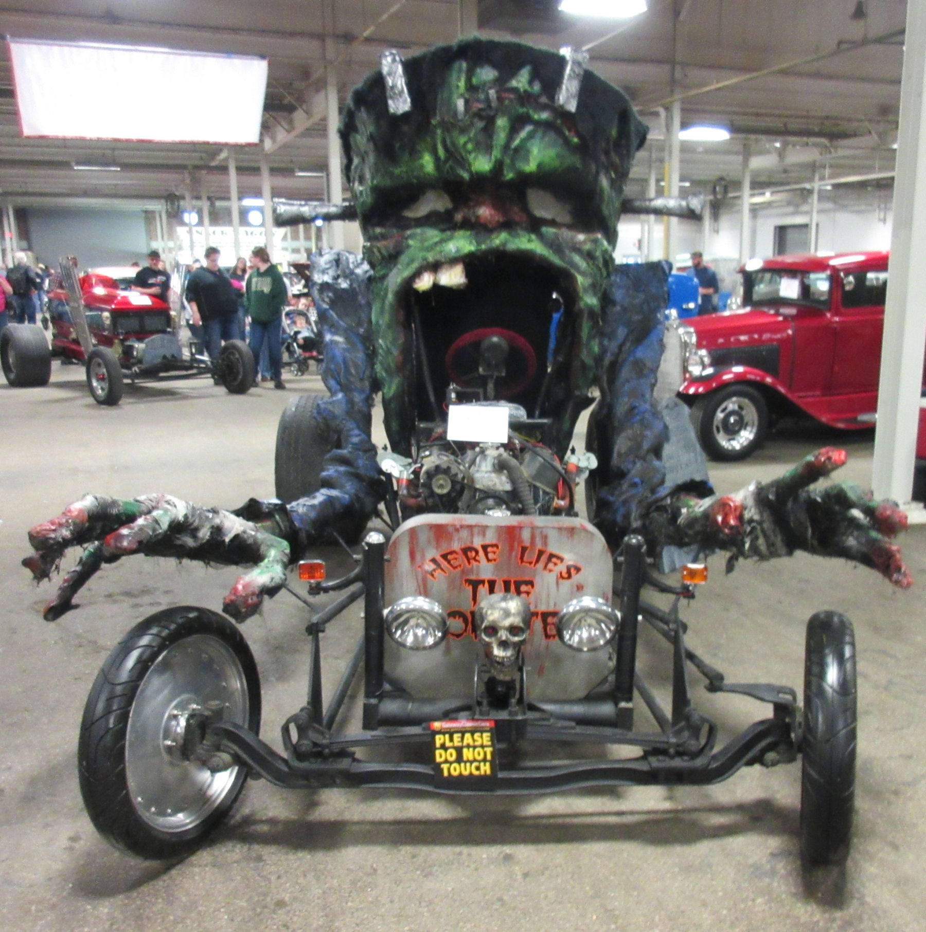 Frankenstein’s monster’s car was one of a few dozen entrants kept in the way, waaaay back of the show in what looked like a random community swap meet.