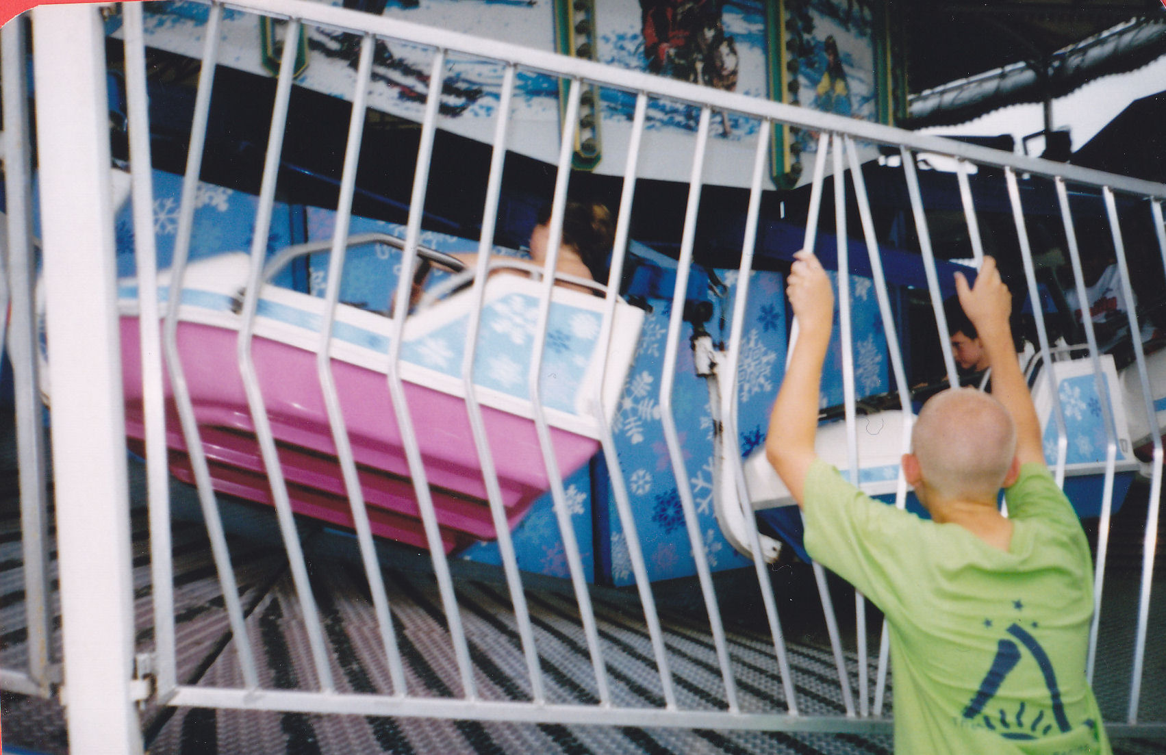 Ditto the Avalanche or Himalaya or Alpine Bobs or whatever this was called at the time. That’s his face peeking between the bars that Green Shirt is blocking.