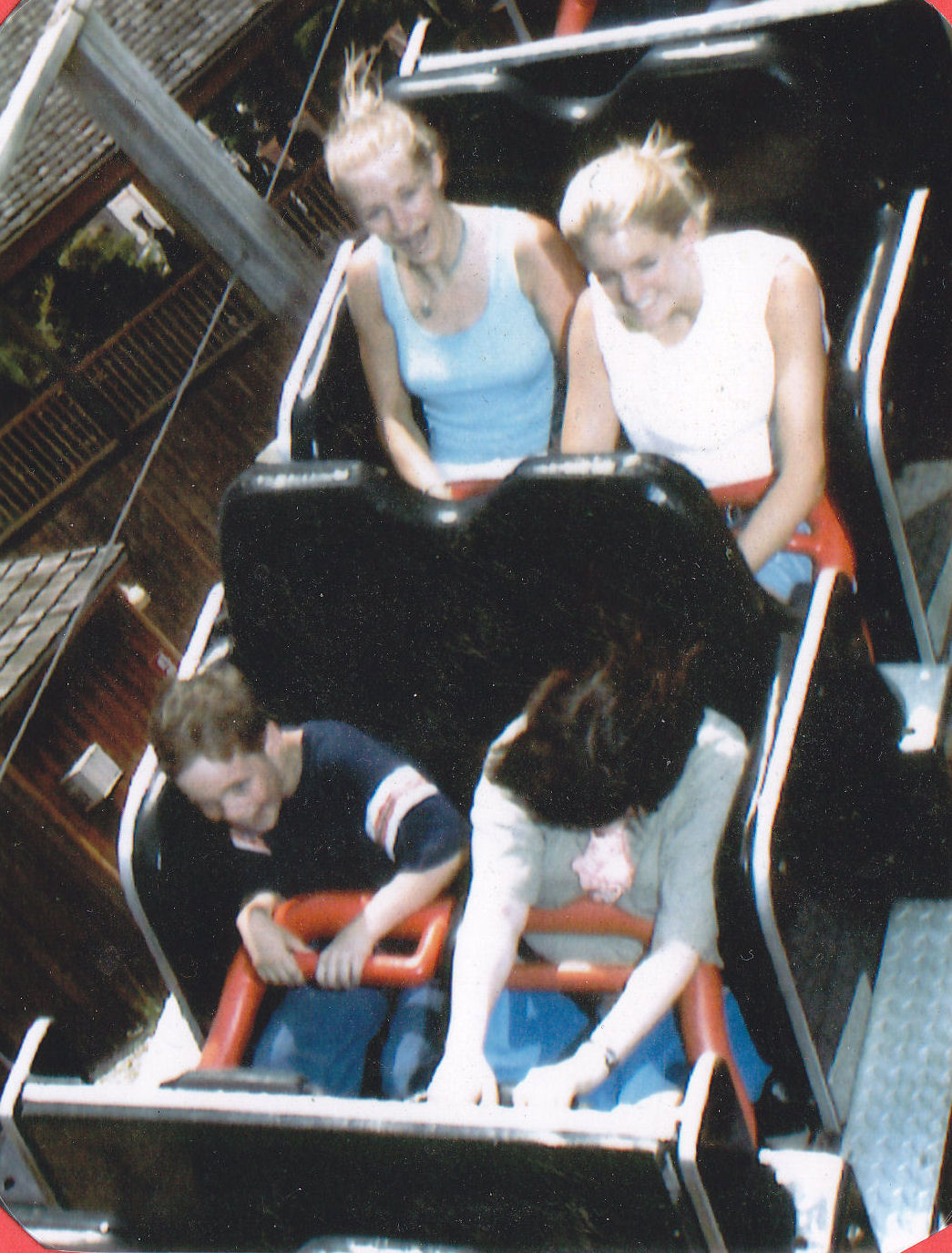 My son and two teenage girls having the time of their lives while Anne assumes crash position all ride long.
