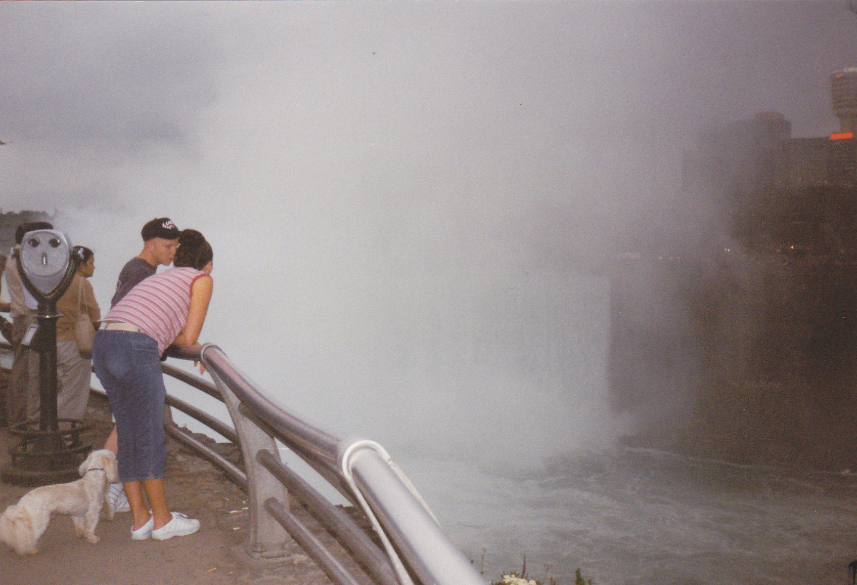 Every visitor is required by North American regulations to pose for photos with the Falls. Anne here is just doing her part as a law-abiding citizen and potential postcard model.