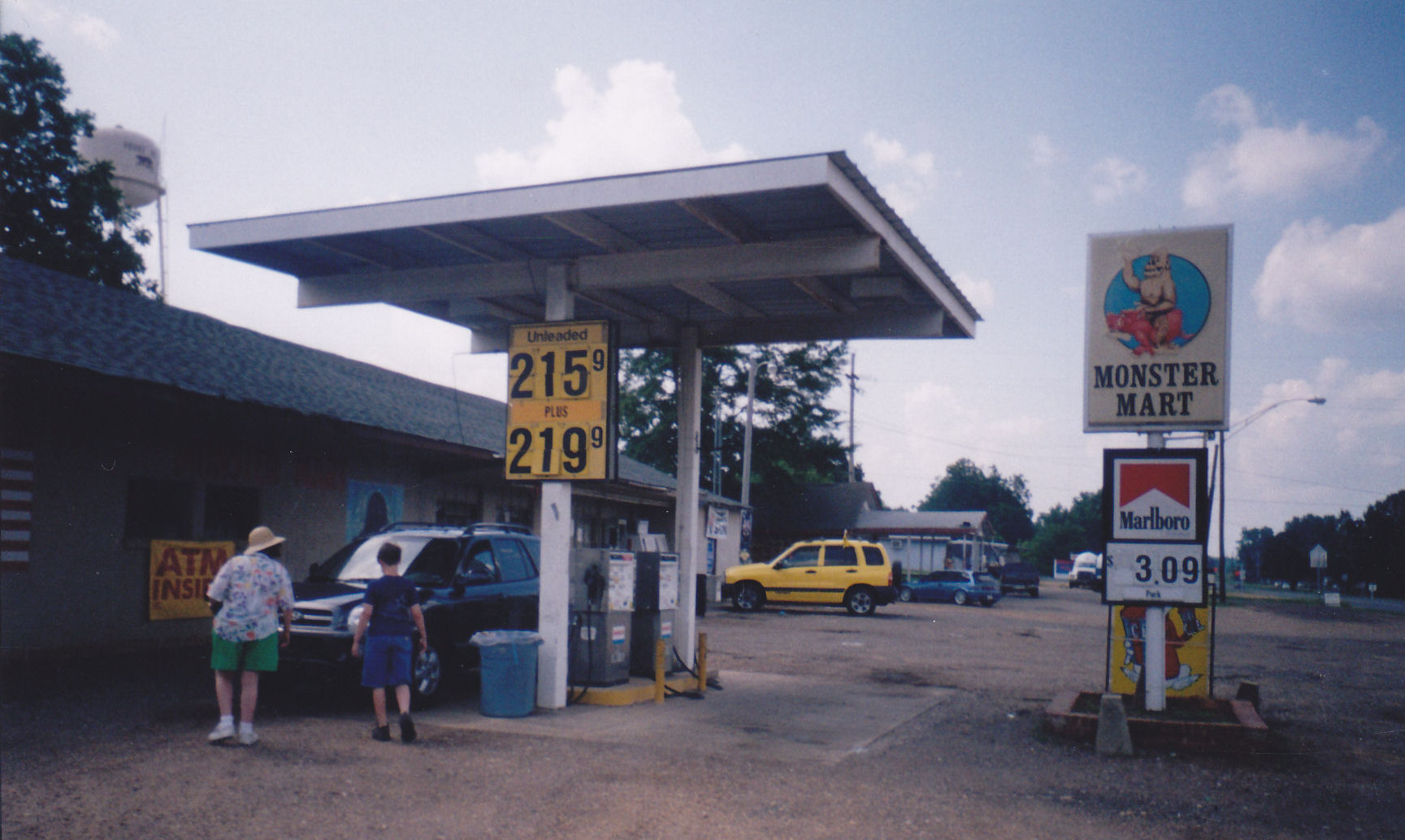 Not-quite-amazing true-story postscript: after the first time I posted the Monster Mart pics online, a few months later I was contacted by a low-level basic-cable TV producer asking if they could use the wide shot of the station for a planned documentary miniseries about all fifty United States to include in the Arkansas episode. At their expense I Fed Ex’d a duplicate of the photo along with a signed release granting my blessing to have something of ours displayed on national TV. I was later informed they’d decided to go in a different direction and wouldn’t be using it after all, but the few minutes between the offer and the shutdown felt pretty validating while they lasted. And just think, the Monster Mart was this close to telling their story to a wider audience. I tried, guys.