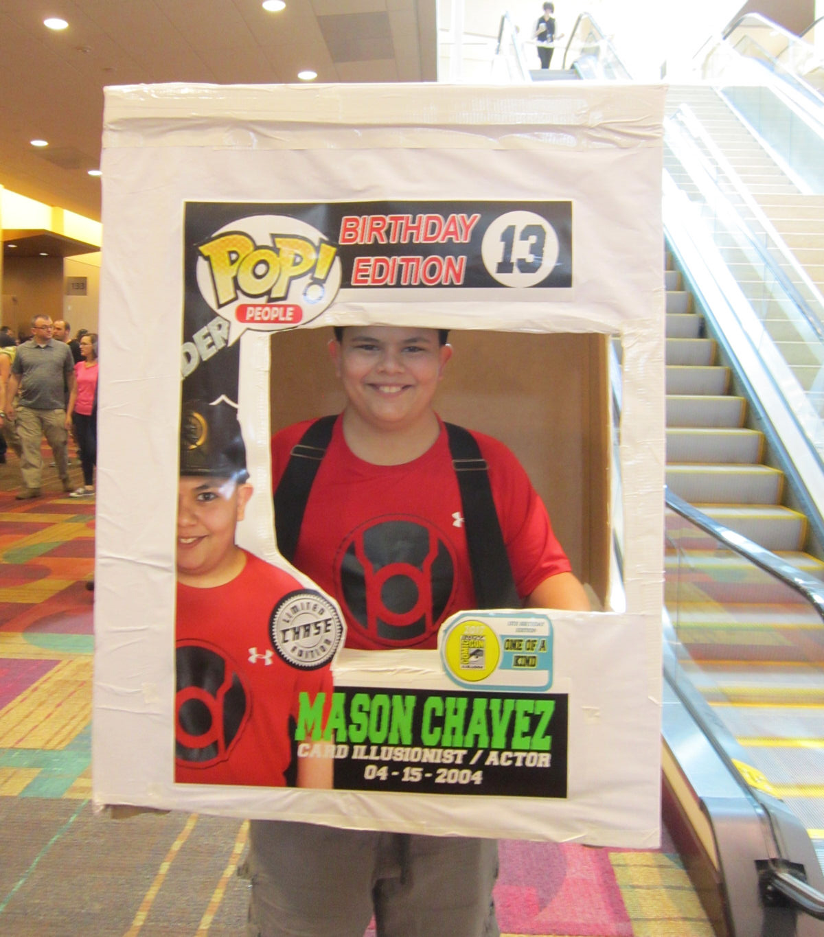 Third place in the kids’ costume contest. If you can’t find the Funko Pop you want, make it yourself. Or as young Mason did, make yourself it. I love how the snazzy Red Lantern T-shirt is on the box, too.