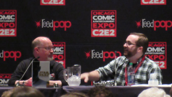 Zahn and his congenial moderator, Del Rey Books assistant editor Tom Hoeler. An anonymous source who hung out with Tom the week before at Star Wars Celebration Orlando tells me he’s “super awesome”.