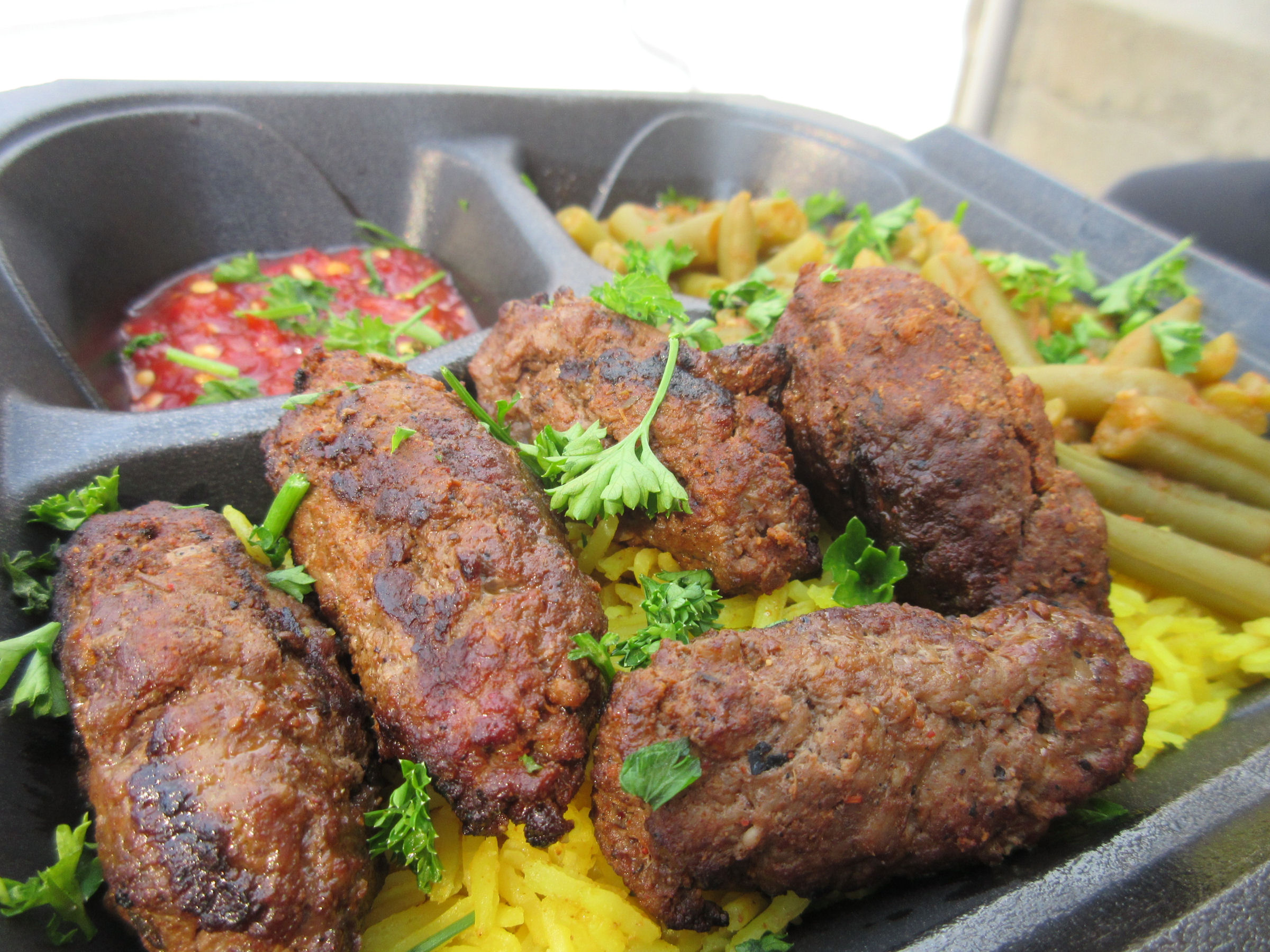 What got me through the next round of lines: kafta — spiced meatballs char-grilled and paired with Moroccan green beans, saffron rice and harissa chili sauce. My one complaint: I wish I could’ve had a double helping of ALL the things.