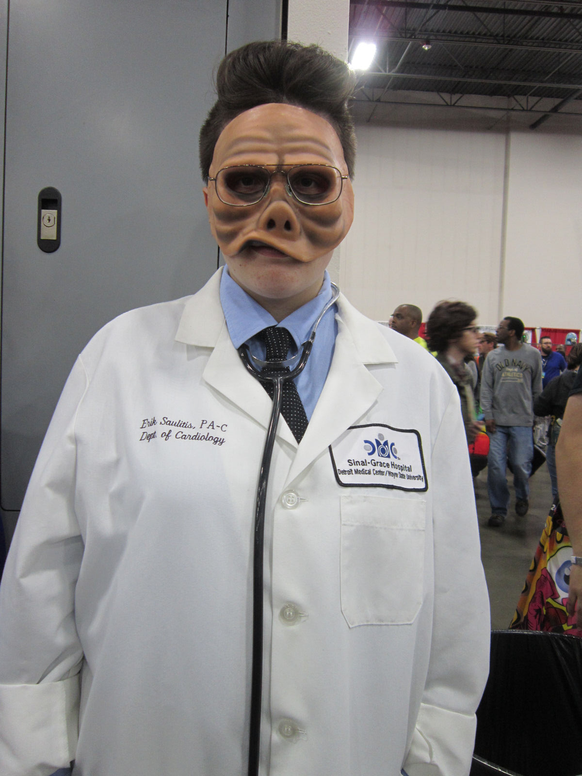 My wife is a massive Twilight Zone fan and will dedicate all available resources to hunting down any related costumes. Case in point: one of the doctors from “Eye of the Beholder”.