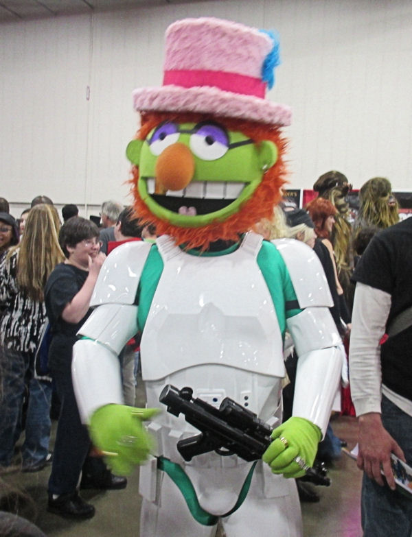 Over by the 501st Legion booth we caught a brief parade of Muppet-themed Stormtroopers, beginning with Bunsen T. Honeydew, who I guess would be their science officer.
