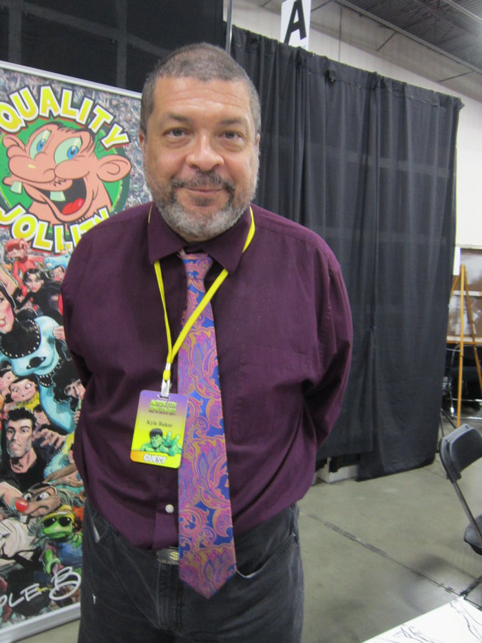 Right next door to McKeever: Kyle Baker! He entered the field as an inker in the ’80s, but quickly graduated to doing his own thing, starting with the original graphic novel The Cowboy Wally Show, a kiddie-host satire (beating Krusty to the punch by a few years) that was one of the most hilarious things I ever read in high school. I read it and read it again until it was dog-eared, and then I was sad because it was a library book. I bought his next graphic novel Why I Hate Saturn the week of release and laughed just about as much. Truly funny funnybooks are sadly not as common as you’d expect in the world of comics. For my money, Baker made at least two of the best of them.