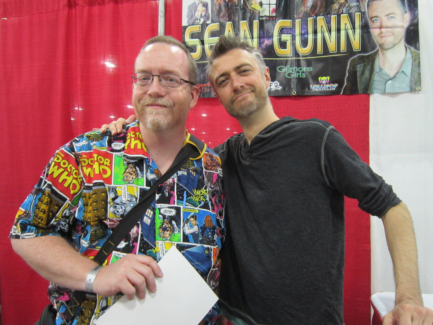 Conveniently next to the photo-op-drome was our next great actor: Sean Gunn! You might remember him as Yondu’s wingman from the Guardians of the Galaxy duology, or as one of the many nifty reasons to watch Gilmore Girls. Any long, longtime readers with elephantine memories may be slightly less befuddled at how one of my favorite things he’s ever done was a small but hilarious part as a perfectionist barista in two episodes of Amy Sherman-Palladino’s late, lamented ABC Family series Bunheads, which I used to recap here on MCC because that’s how much it wowed me even though I know next to nothing about ballet.