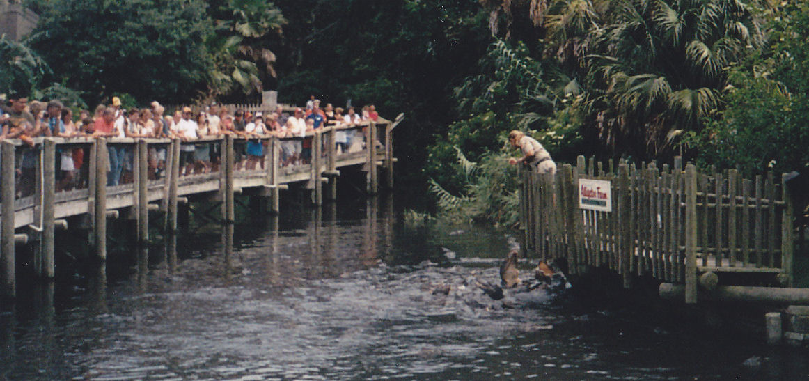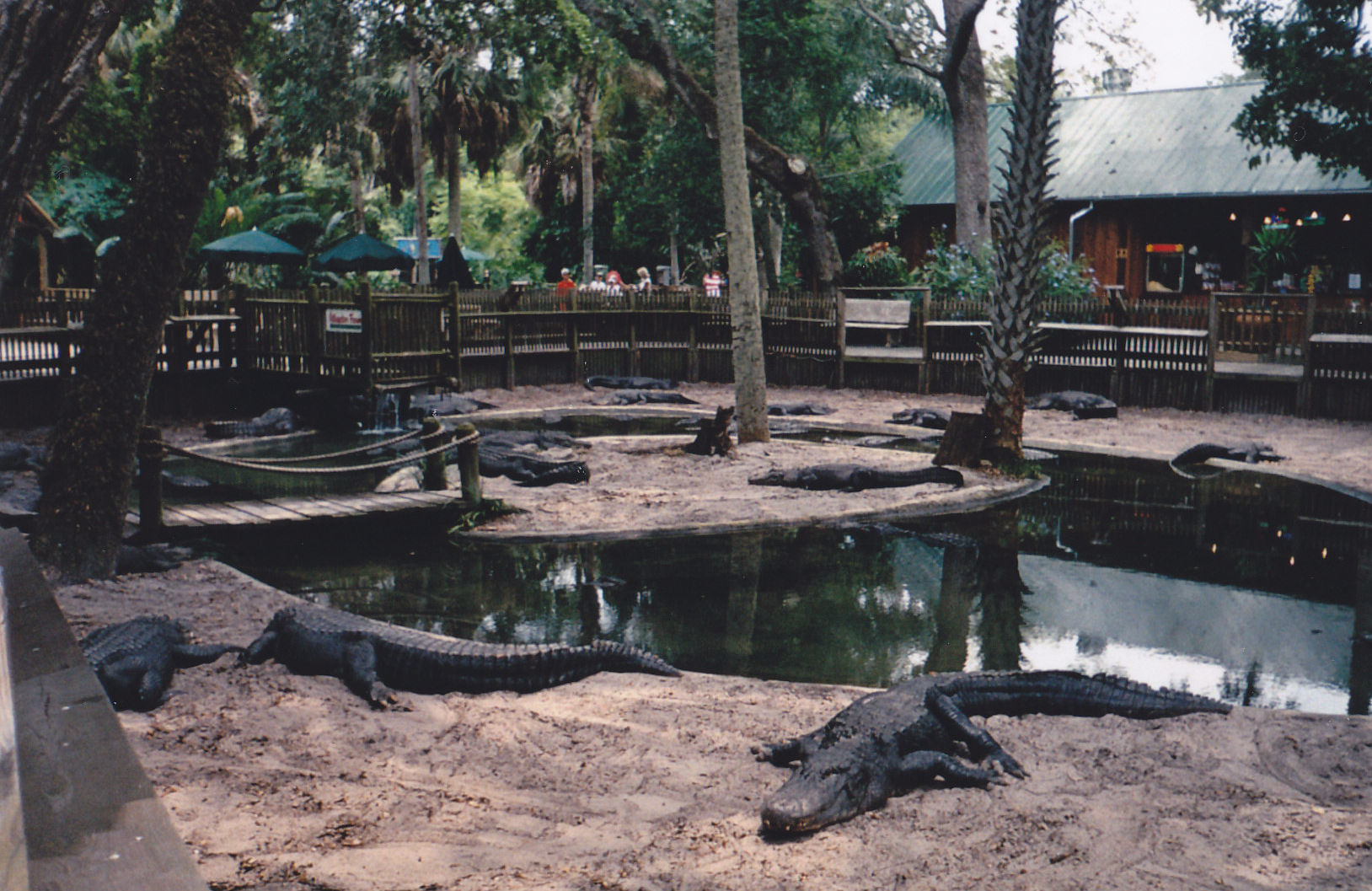 The main event of any visit if you arrive at the right time: feeding time! It’s an entertaining scene for fans of feeding frenzies, but not for the faint of heart. Every day at the same time, all the free-range gators swim to the center of the park and wait for a keeper to empty buckets of (non-living) meat into their teeming scaly masses, then spend several minutes writhing all over each other in competition for morsels, like a cross between mud wrestling and a pie-eating contest.