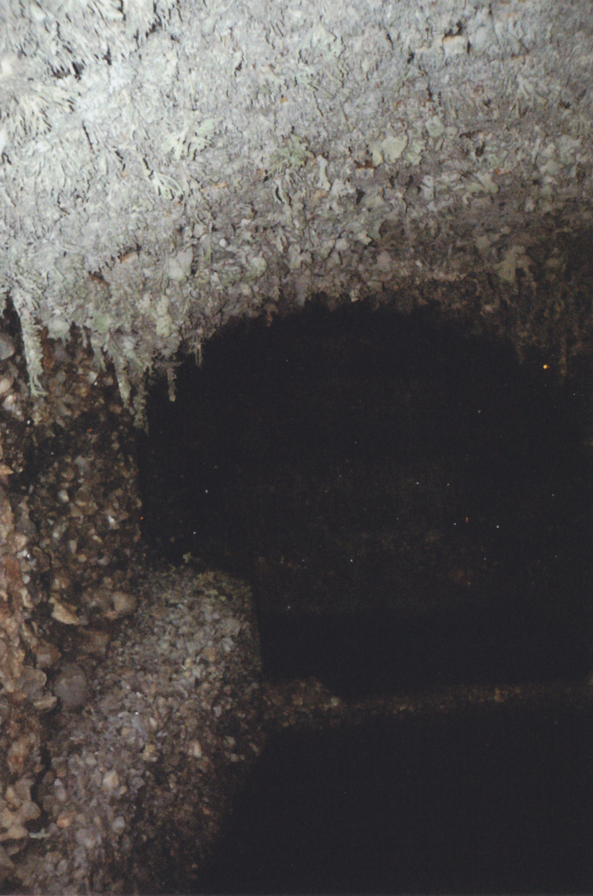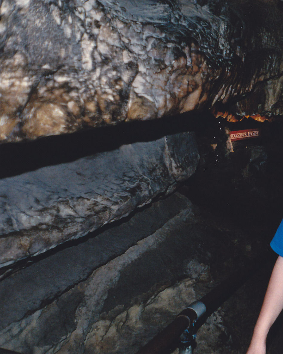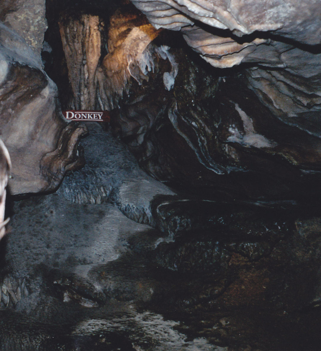 I’d love to show off a dozen wondrously artful photos, but mere feet from the elevator my camera batteries died. In these primitive times six years before I bought my first smartphone, I’d forgotten to pocket my spare double-As, which were safely tucked away in our luggage up on the surface. Anne’s camera worked fine, but her flash wasn’t nearly powerful enough to illuminate large areas. Several of her photos look like this:
