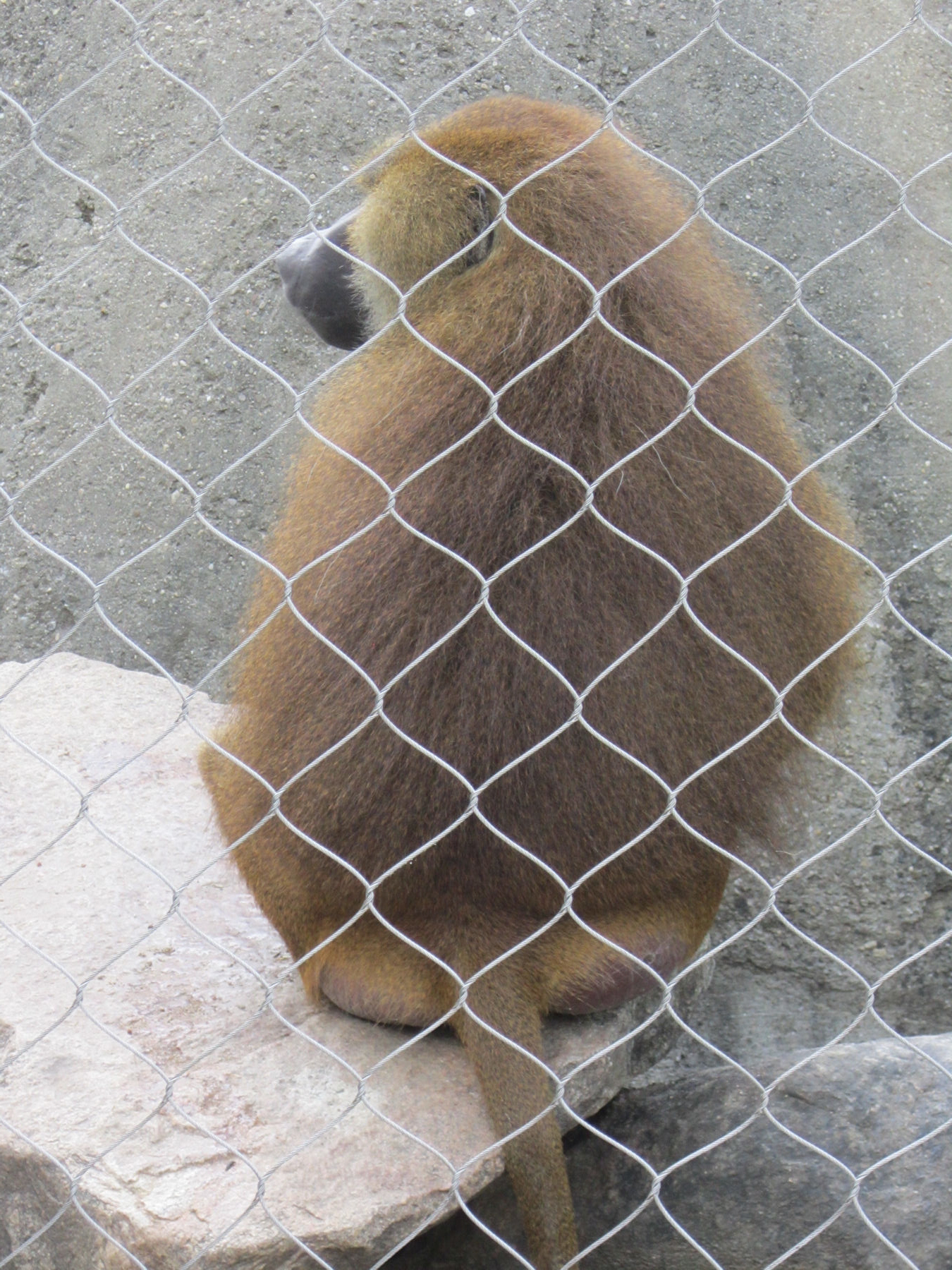 In today’s chapter: monkeys! Often the highlight of a zoo visit as they’re frolicking and gallivanting and perpetrating mischief on each other…um, we picked a bad Saturday for them, apparently. Mostly we found simians in a state of quiet solemnity, relaxing where they were and pondering their life choices. As with us humans, not every day is a party for one of nature’s most party-hearty animals.