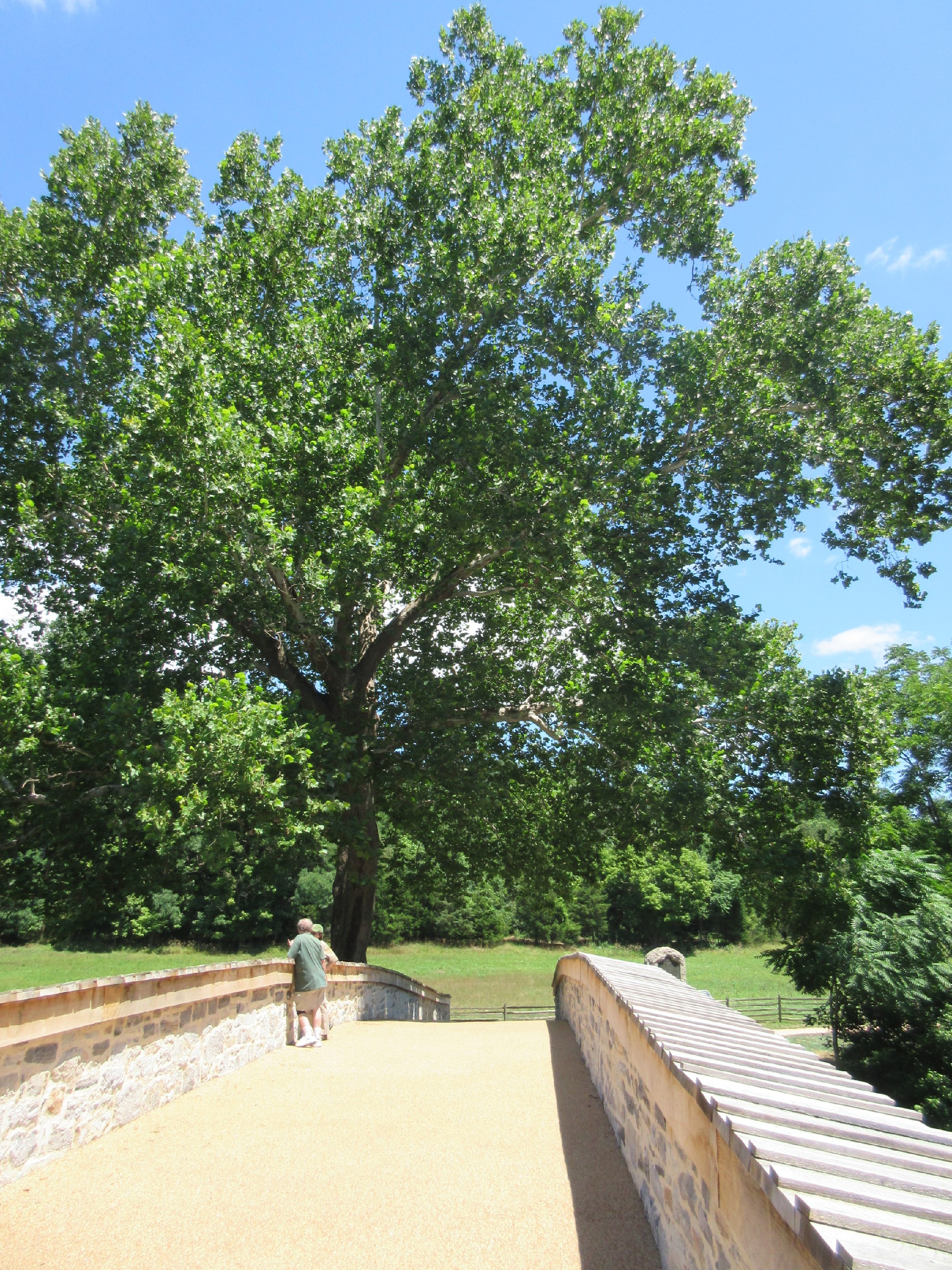 On the north side of the bridge is Burnside Sycamore, a tree that’s stood in the same spot since at least 1859 and shows up in vintage photos taken days after the battle. Sources conflict as to whether it was a few years old at Burnside’s side or whether it predated the bridge itself.