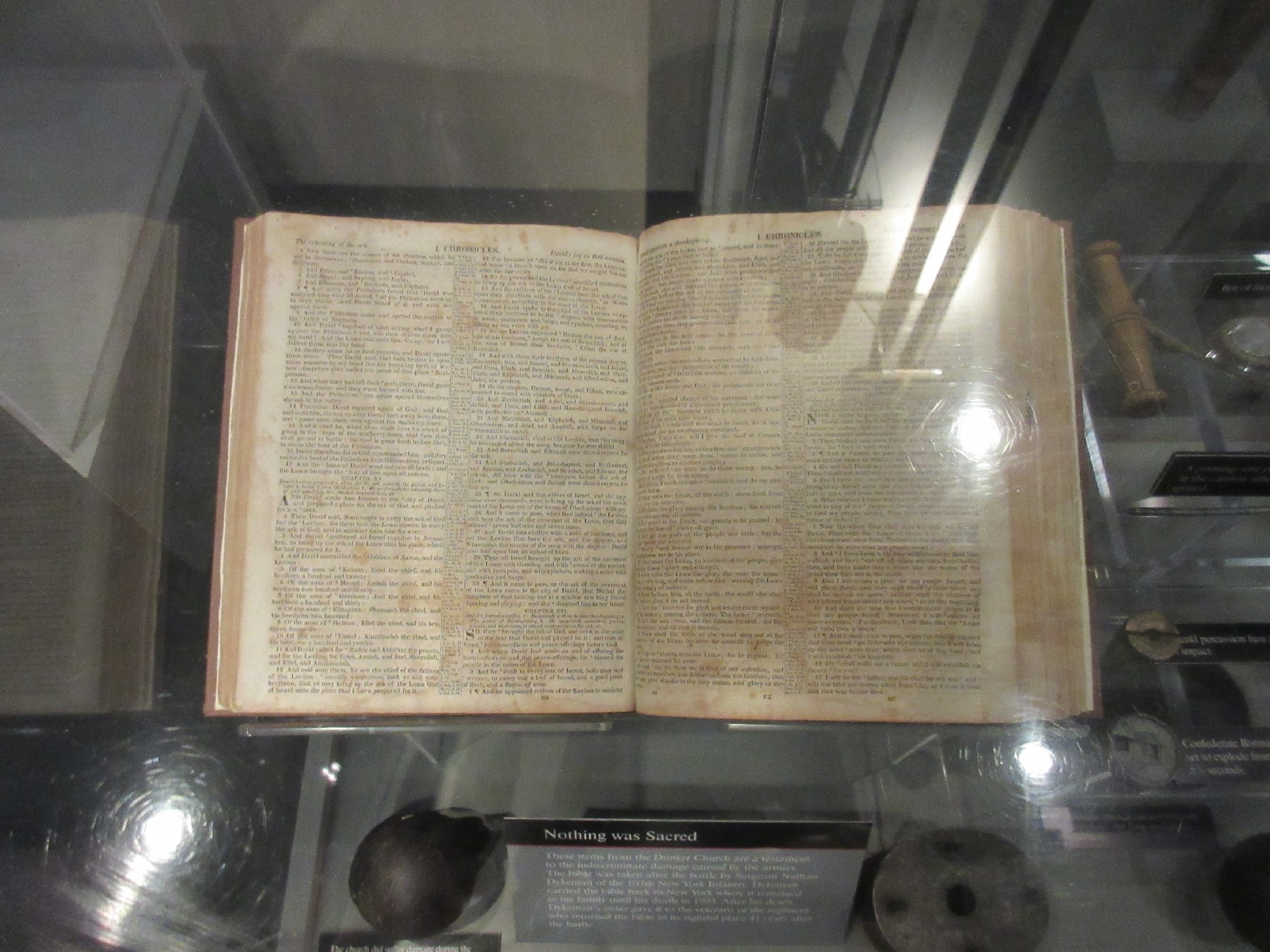 Inside the Visitors Center we paid our official admission dues and were then permitted to enjoy the air conditioning and a series of display cases containing authentic artifacts from that day.