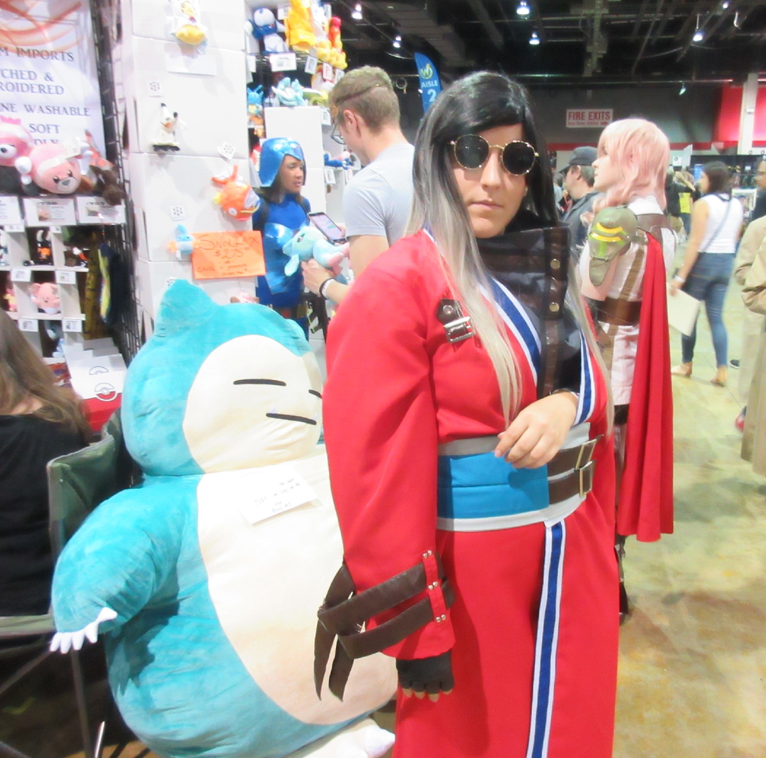 …and that’s very nearly it for our 2017 costume photos. Cosplay also factored into one of the panels we attended, but we’ll come back to that. We might’ve had dozens more than these if the autograph and photo-op lines hadn’t kept us trapped away from the action a bit longer than we’d expected, or if we were younger and faster, or if we recognized more anime characters anymore. The older we get, the fewer faces and costumes we’re recognizing, which dampens our graying enthusiasm. I hate hate hate posting unlabeled photos. I enjoy learning about new universes, but the crowded show floor isn’t always the best classroom for that. Regardless, we like to praise and share what we can.