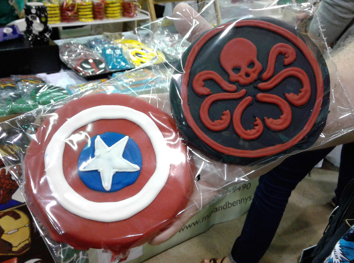 Anne and I respectively bought Cap and Hydra cookies, because we just had to taste both sides. Turns out they’re identical on the inside. That’s, like, deep.
