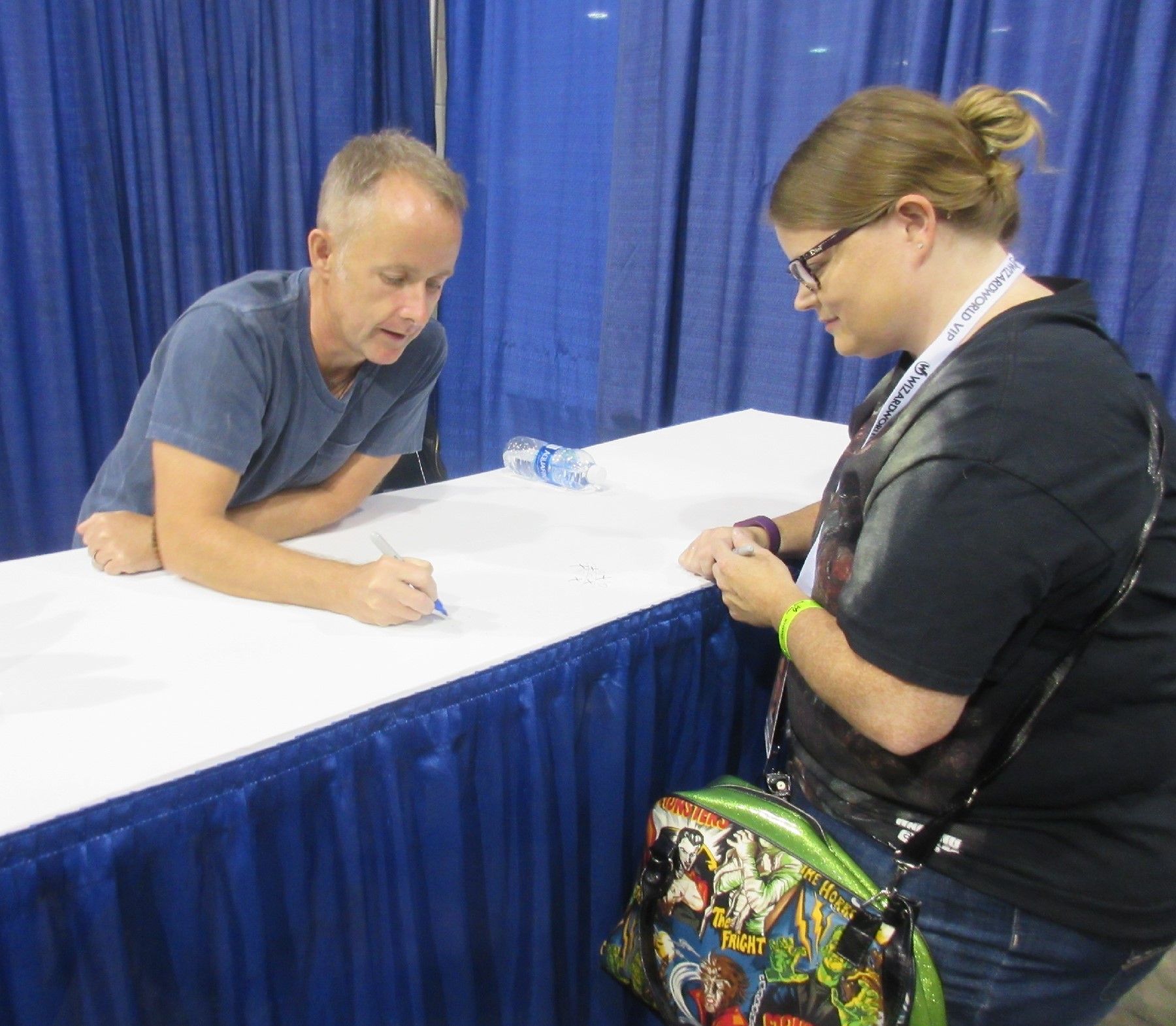 Next down the line: Loren Lester, best known to my crowd as the voice of Robin from Batman: The Animated Series. I previously met Kevin Conroy (also a guest this year) at WWC 2014, so it only made sense to complete the Dynamic Duo set. We waited mere seconds before the other fan in line was finished. Lester was incredulous at the notion of teenagers watching the series back in the day, but I figured this wasn’t a good time for a ten-page dissertation on how B:tAS appealed to multiple fandom levels at the time. I gather he doesn’t do many of these shows.