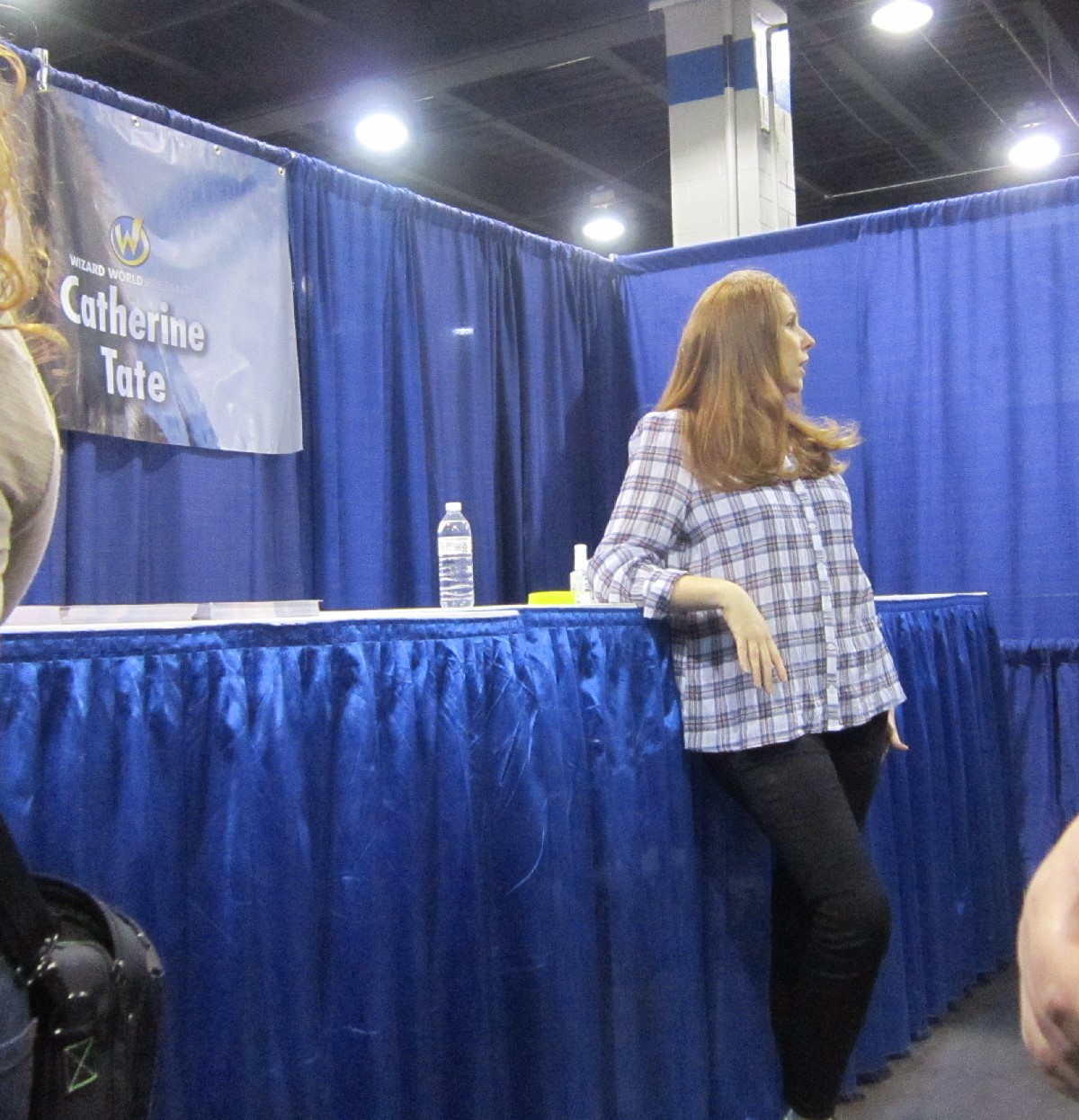 A handful of actors were scheduled to sign on Friday (a bit uncommon, as most wait for Saturday and Sunday) and to begin at 12:15, including one of the four actors with Doctor Who on their resumé. Catherine Tate was Tennant’s companion Donna Noble in season 4, but some Americans who hung on through all nine seasons of our version of The Office may remember her as Nellie from the series’ post-Steve Carell era. Those were two largely awful post-shark-jump seasons that I refuse to buy on DVD and complete the set, but Anne and I grew used to her by the end, and thought even more highly of her when we subsequently hopped about the Who train.