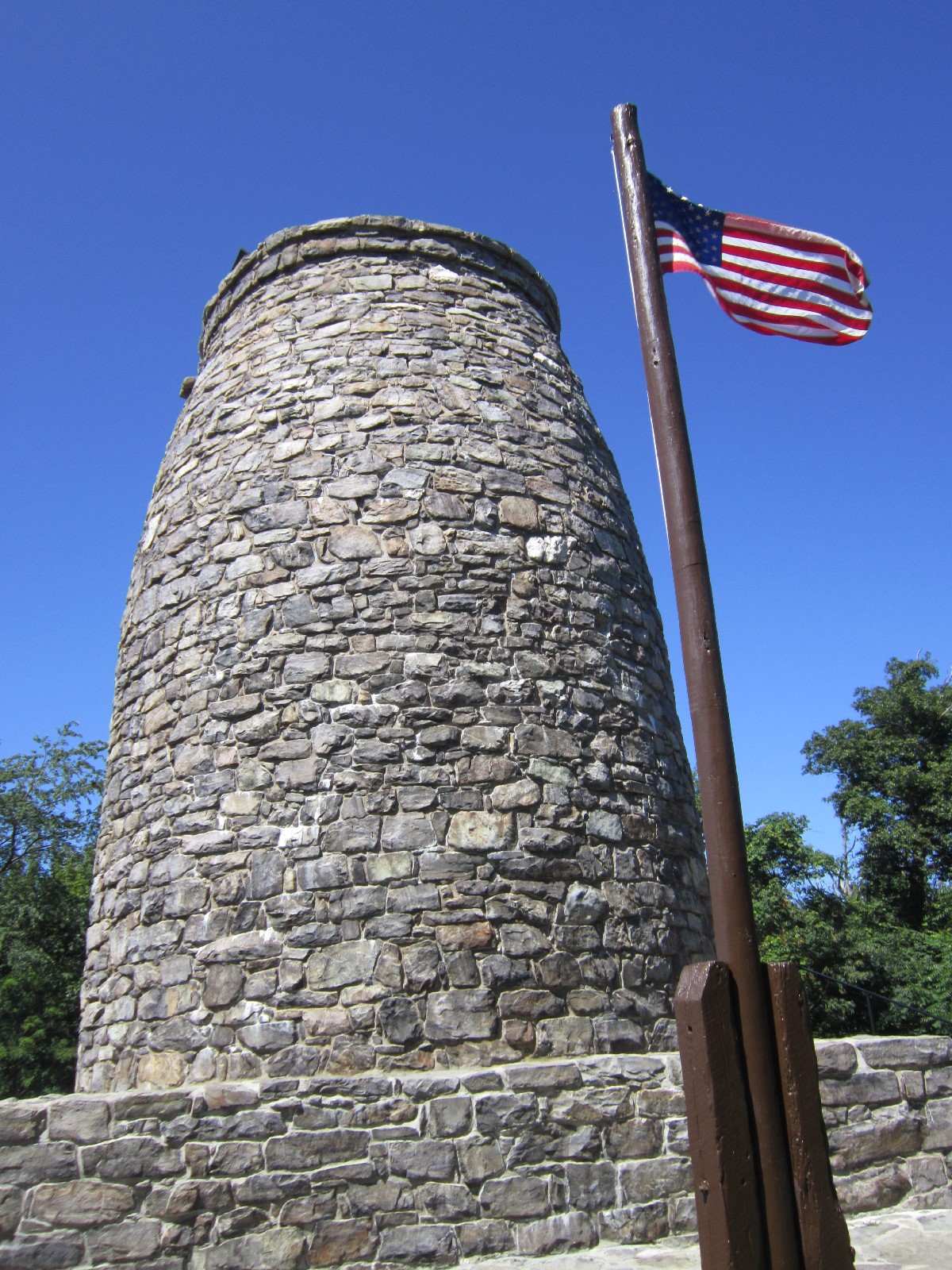 Ten miles east of Antietam is Boonsboro, a town at the foot of South Mountain. We followed the highway to the other side of Boonsboro and onto an obscured, steep, mostly one-lane back road, through cramped neighborhoods and shrouds of trees, up the mountainside and to the entrance of Washington Monument State Park, whose admission gate is an honor-system cash box. Its mostly shady acreage is a combination of short trails and basic playgrounds, with the longest path spiraling further uphill to the local centerpiece at an elevation of 1,540 feet.
