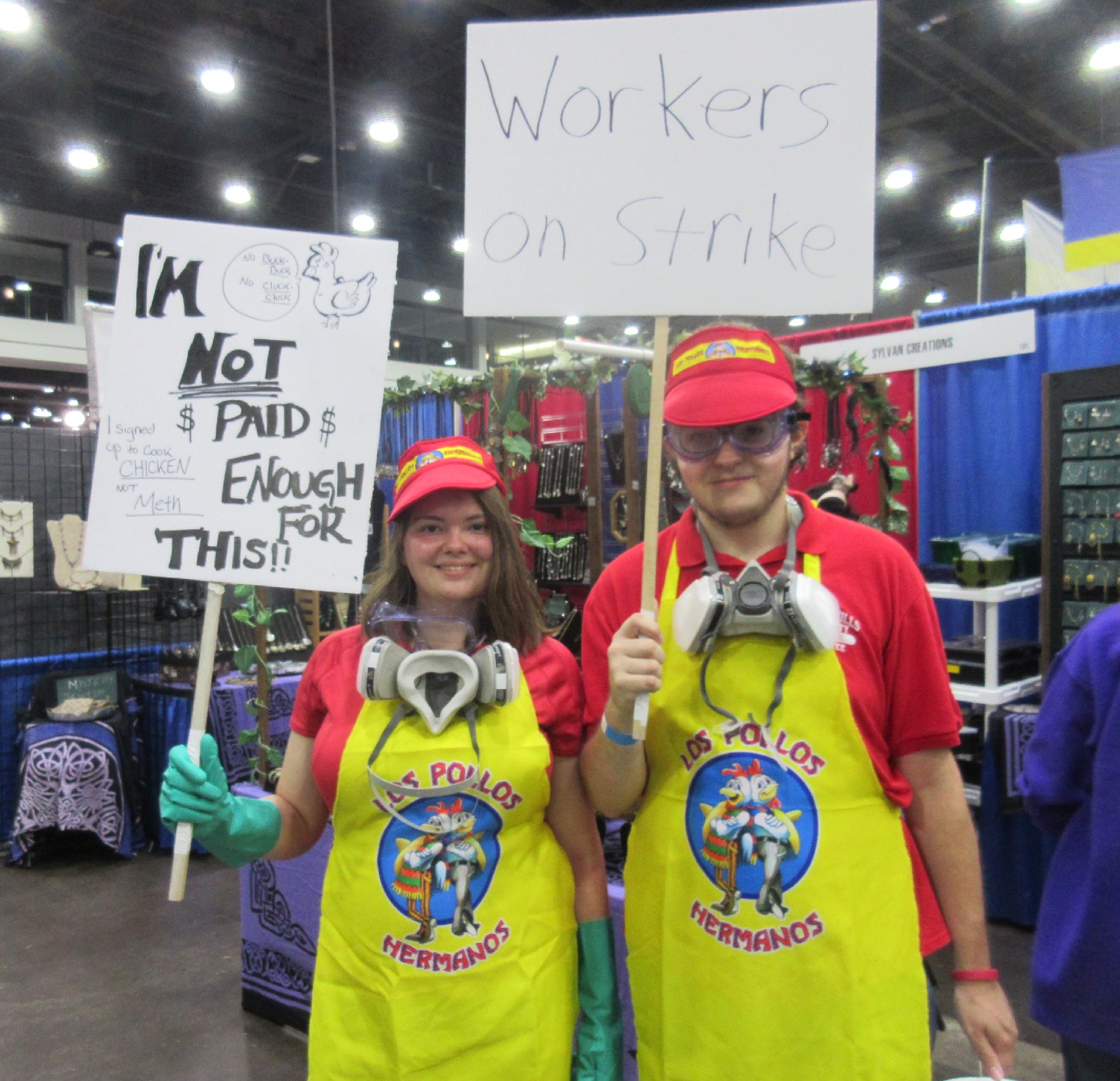 Employees from Los Pollos Hermanos on strike until and unless Breaking Bad returns but with less meth and more chicken.
