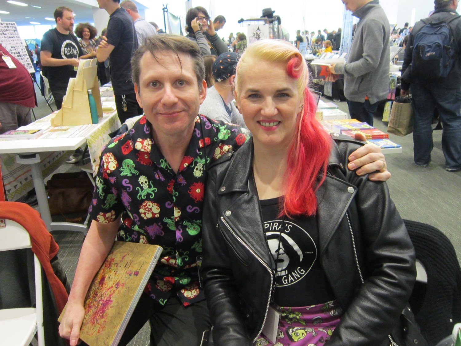 My very, very first stop of the day had to be at the table of Evan Dorkin and Sarah Dyer. The delightful duo has written for various animated projects including Superman: The Animated Series, Batman Beyond, Yo Gabba Gabba, and DC’s Metal Men shorts from a few years ago.