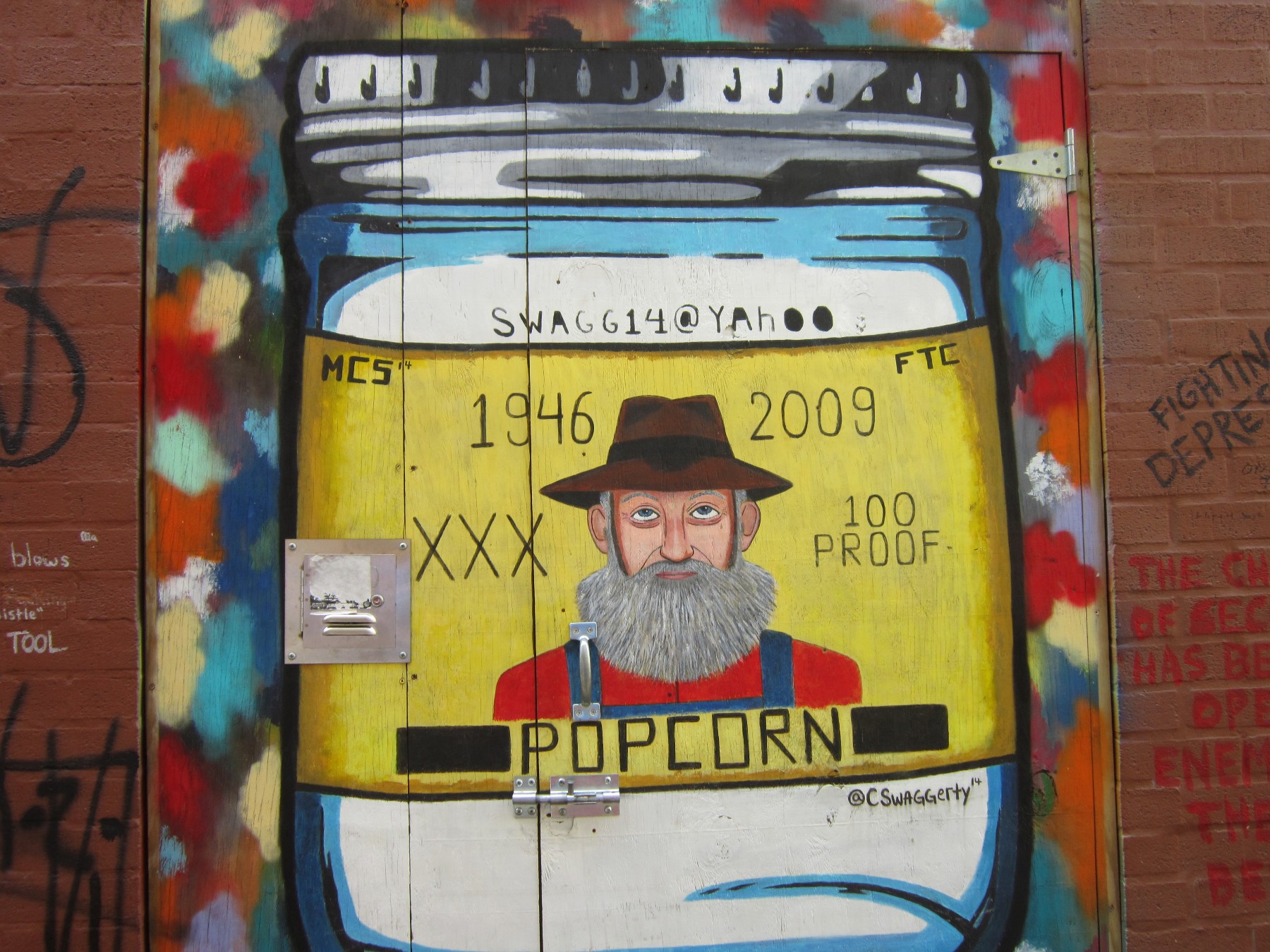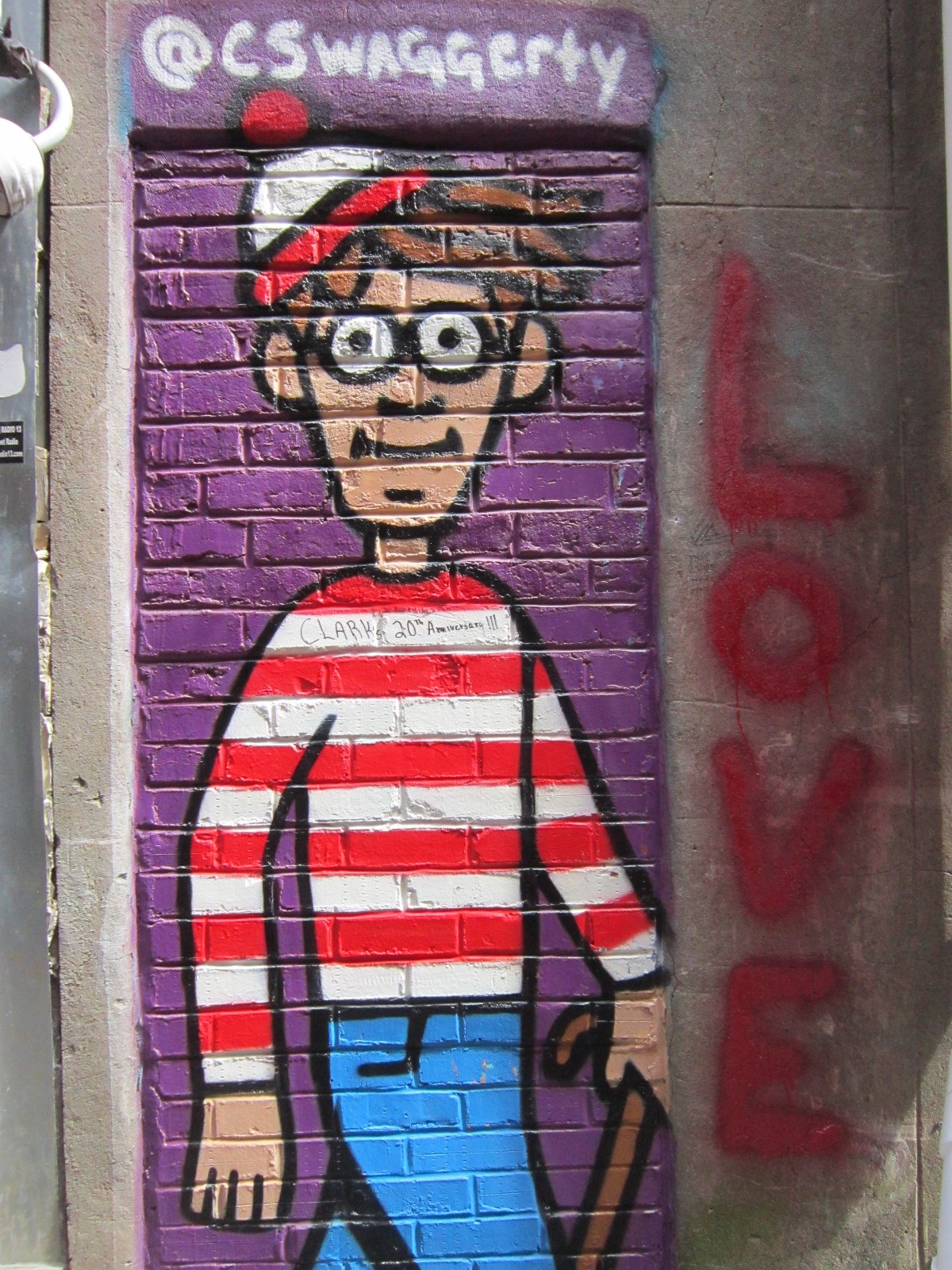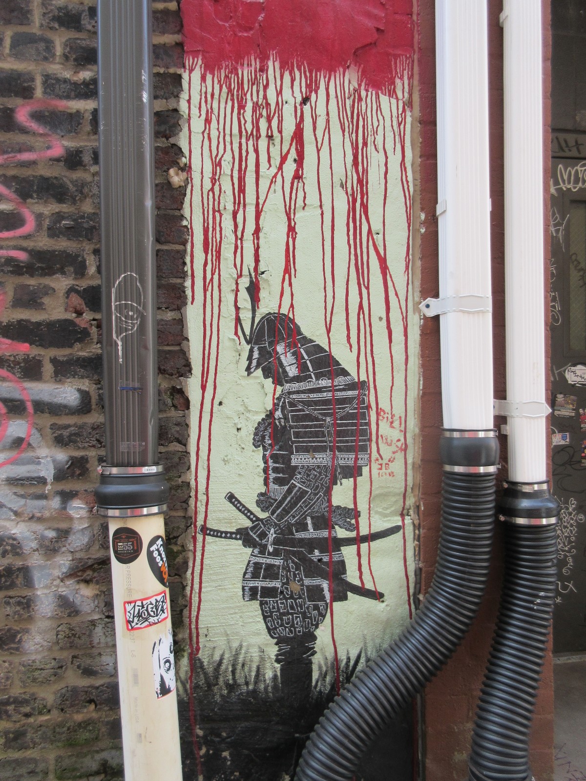 My favorite part, like nearly everything posted above, was a complete surprise — a hidden, half-block-long, mural-covered niche called either Strong Alley, Armstrong Alley, or Graffiti Alley depending on who you’re asking. Normally when we walk around a strange city and see an alley between buildings, we assume that way lies crime and bodily harm, and we keep right on going. This time, scintillating colors and familiar images beckoned to us and demanded our attention, kind of like a flat Pennywise minus the demonic murdering.