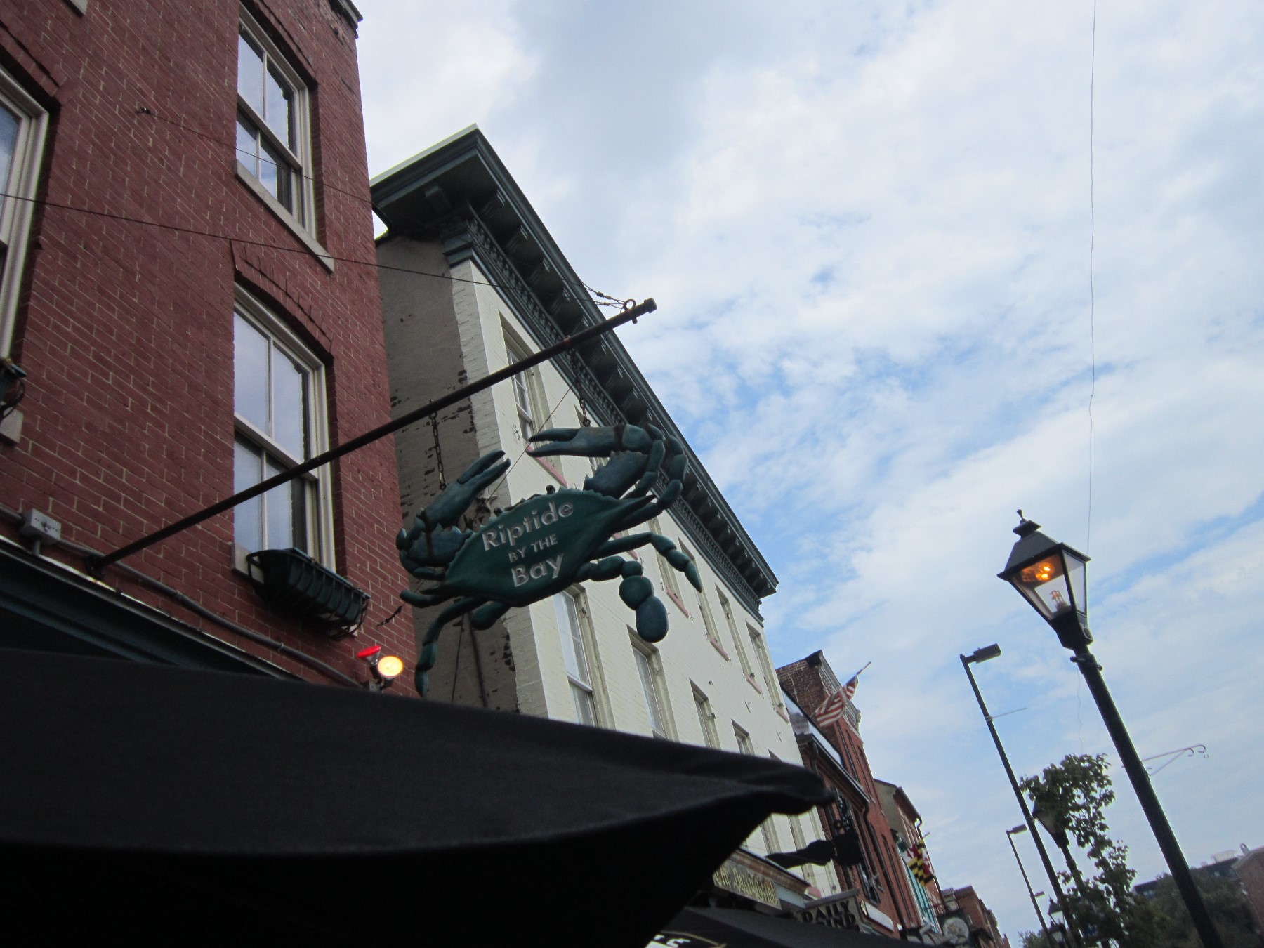 Speaking of happy tales: one of our favorite meals of the week was lunch on Day Three. The water taxi route back from Fort McHenry required a stopover in the charming historic neighborhood of Fells Point. Rather than waste time scrolling through Google Maps results, this time we fell back to the old hunter/gatherer methods of looking around and seeing what we could find in front of us. The winner: a joint called Riptide by the Bay.