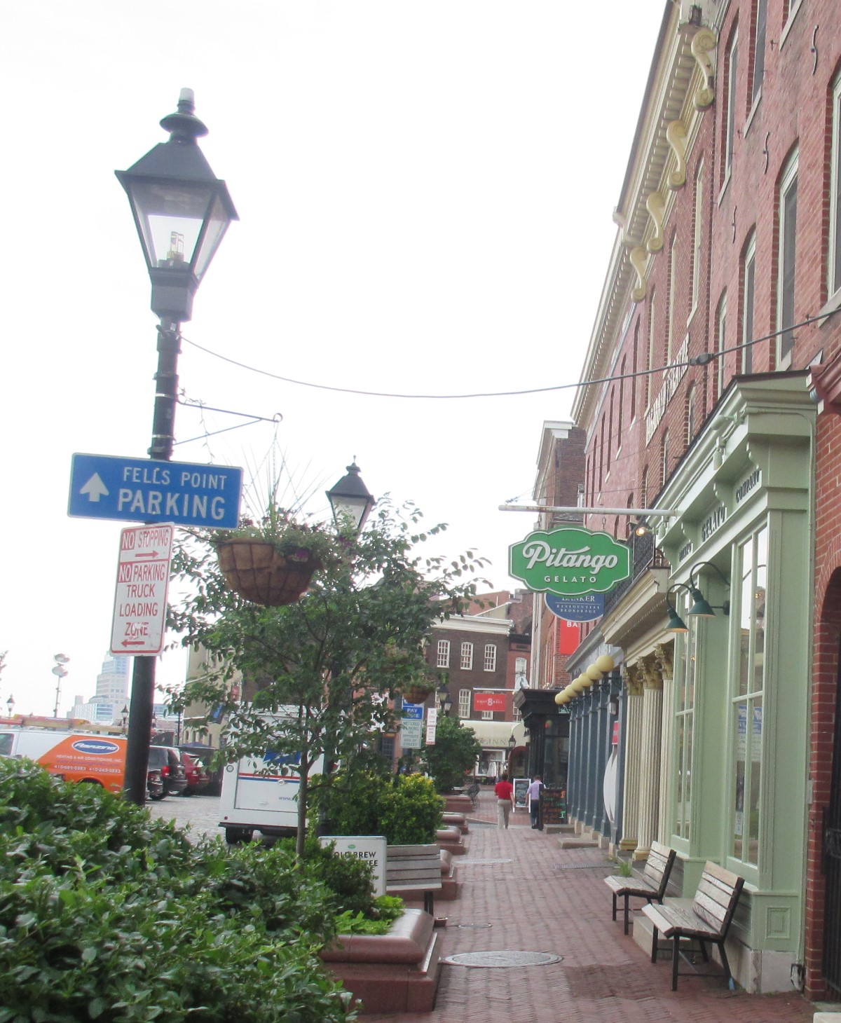 Quick history lesson, short version: Fell’s Point has been around since before the American Revolution and has gone through a number of phases, from shipbuilding nexus to British war target to de facto pirate HQ to bar crawler’s dream to thriving immigrant neighborhood. It’s been on the National Register of Historic Places since 1969 (with the adjacent Upper Fell’s Point added in 2007) and served as primary filming location for the NBC series Homicide: Life on the Street, of which I consider myself a huge fan even though I have some episodes left to watch. Fell’s Point also boasts a number of independent businesses of varying sizes and street cred. Many of the buildings are centuries old, but the creeping specter of gentrification pops in here and there.