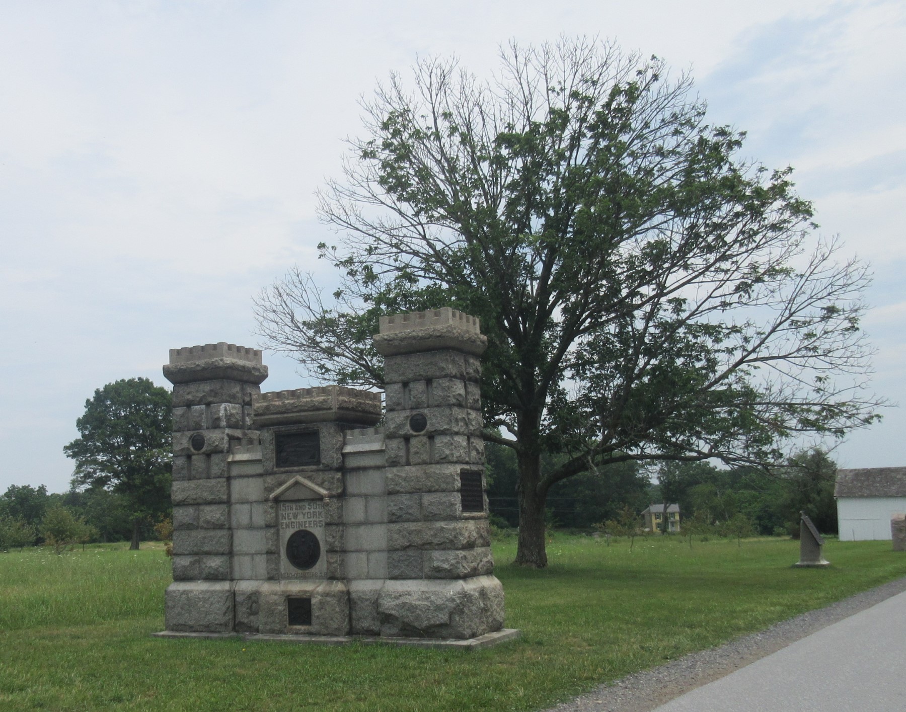 Side view of the 12th and 44th New York Infantry Monument, as seen in our lead photo. The 44th, a.k.a. “Ellsworth’s Avengers”, named themselves in honor of Elmer Ellsworth, a close personal friend of President Abraham Lincoln who was among the first Union officers killed in the war.