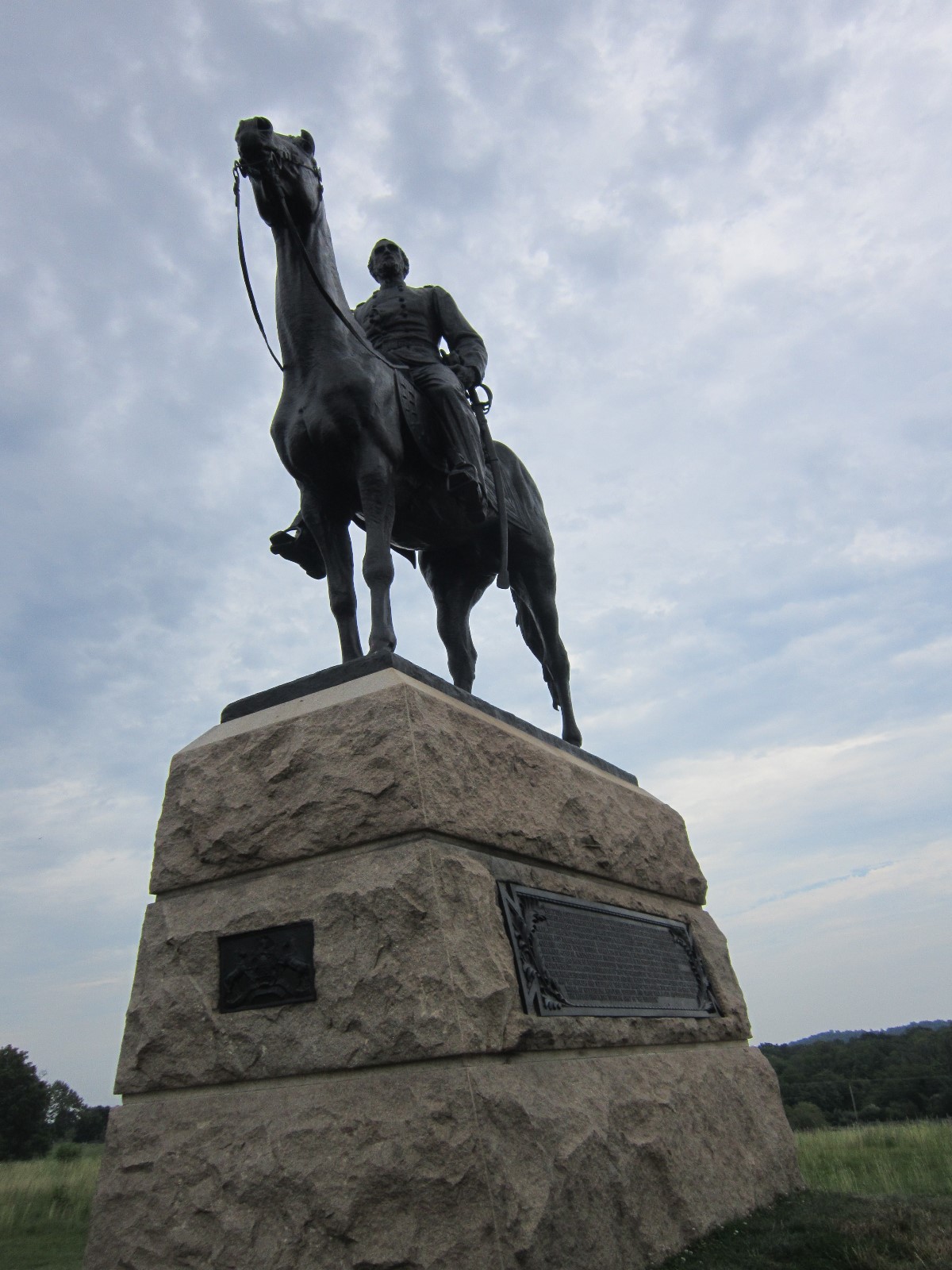 In addition to the state and regiment monuments, several individuals have their own statues. Major General George Meade took command of the Army of the Potomac three days before Gettysburg and technically “led” them to victory, only to let General Lee and his men get away and live to fight another day. “He got really lucky,” says Anne of Meade’s ostensible accomplishment.