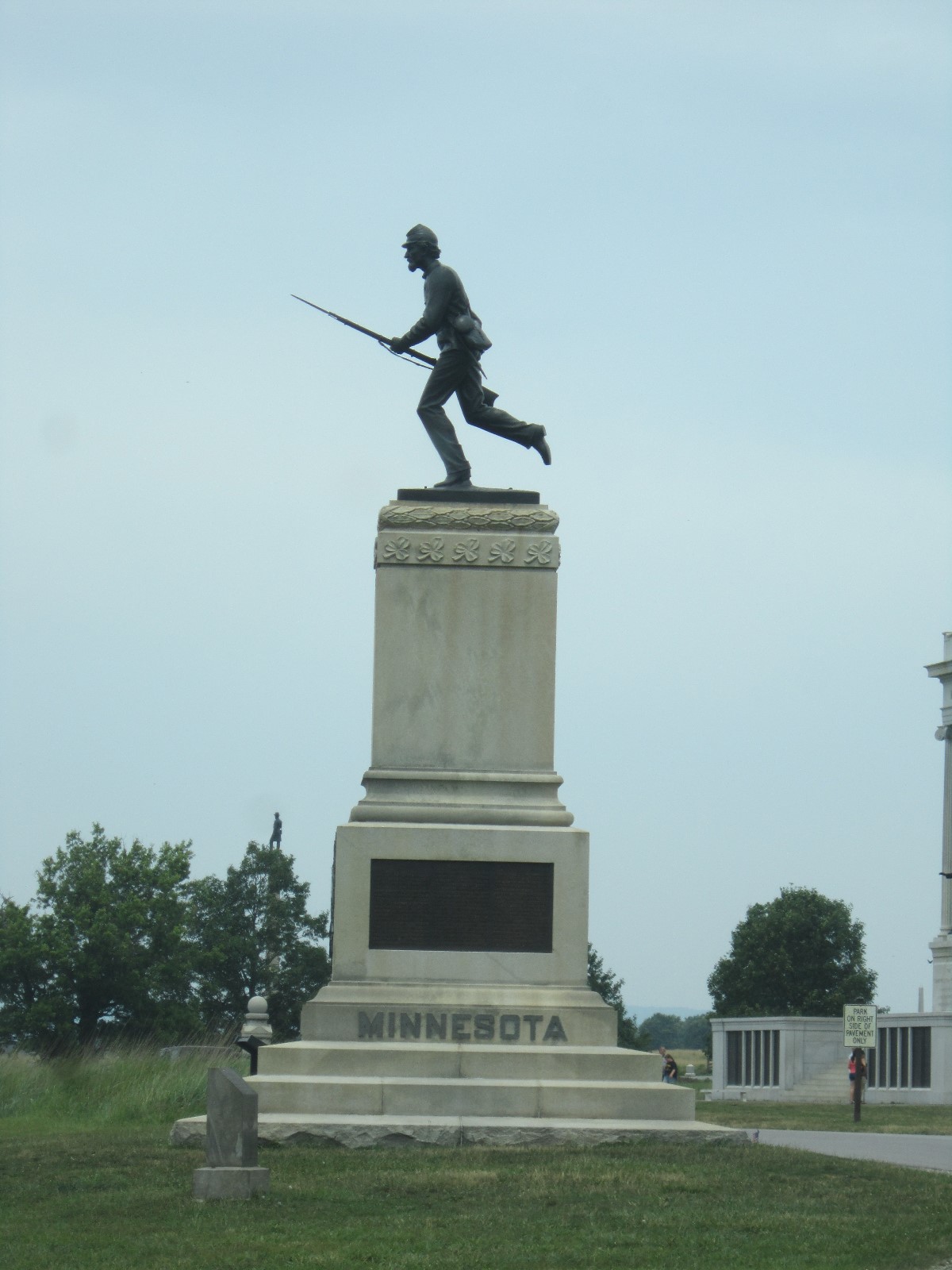 The 1st Minnesota Volunteer Infantry, one of three Minnesota markers. Less than one-fifth of their ranks survived Gettysburg.