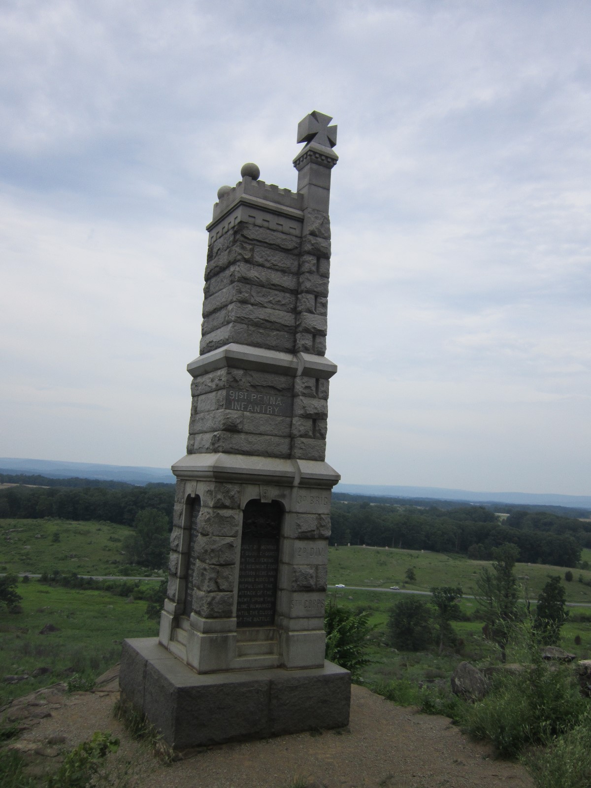 As the state with home-court advantages, Pennsylvania outnumbers the mentions of all other states here at Gettysburg. Their 91st Infantry earned one of the tallest at the scene of Little Round Top.
