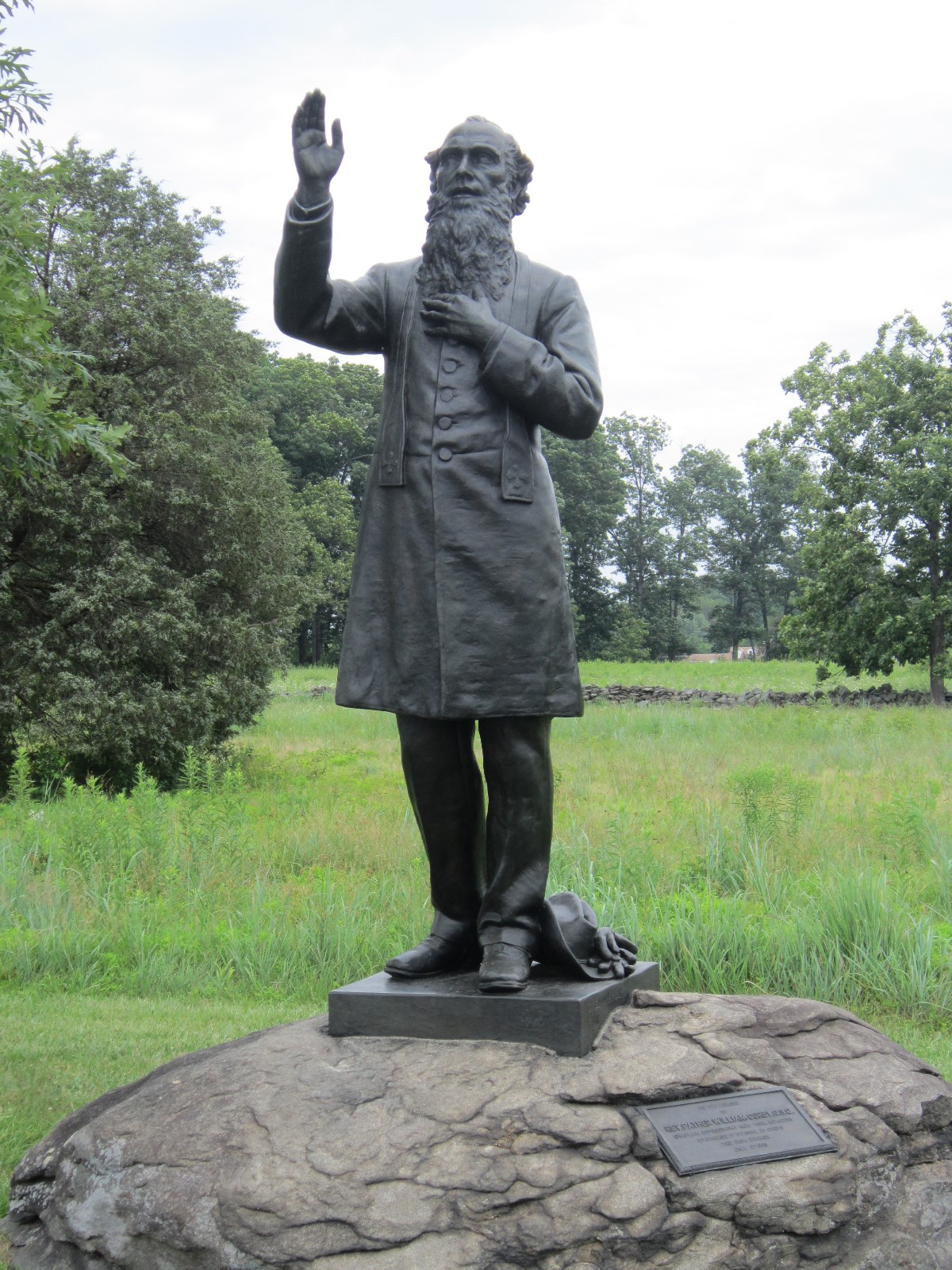 One of a handful of non-generals rendered in Gettysburg stone, Reverend William Corby served as chaplain for the Irish Brigade, who weren’t doing so well by then. Corby would live on to serve as president of Notre Dame.